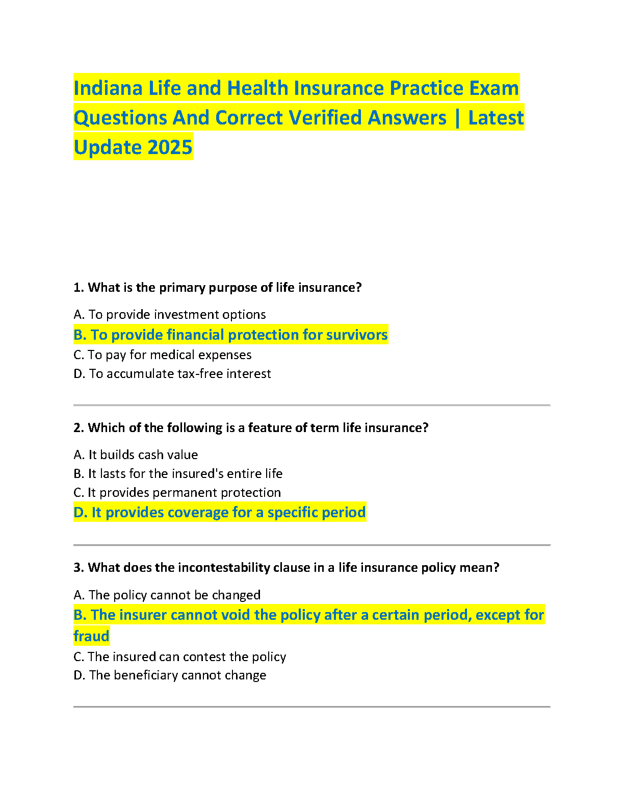 Indiana Life and Health Insurance Exam 2025 Test Bank: A Comprehensive Q&A Guide to Pass on Your First Attempt