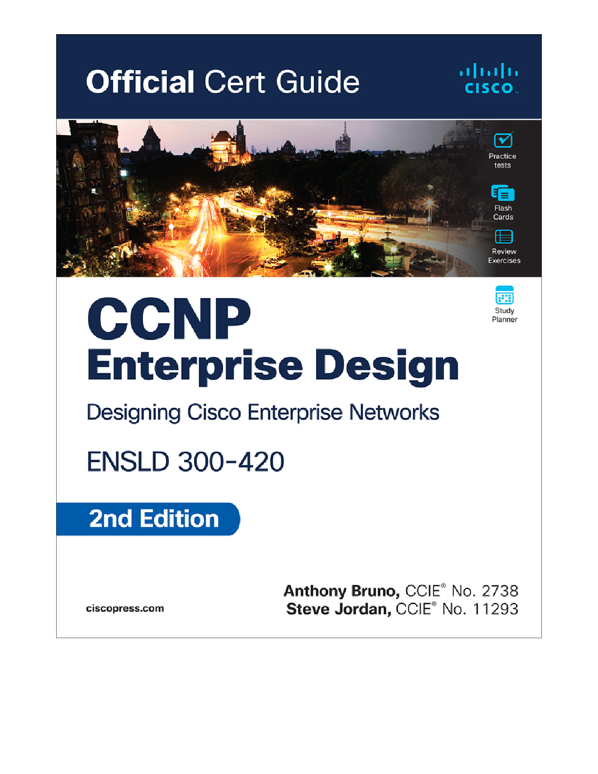 Master the CCNP Enterprise Design exam with the official Test Bank for 'Designing Cisco Enterprise Networks (ENSLD 300-420), 2nd Edition'. Authored by industry experts Anthony Bruno and Steve Jordan, this comprehensive resource provides a complete collection of practice tests, review questions, and detailed exercises directly aligned with the latest exam objectives. Enhance your learning with flashcards and a structured study planner to ensure you're fully prepared. This is the ultimate tool to test your knowledge, identify areas for improvement, and pass the ENSLD 300-420 certification exam on your first attempt.