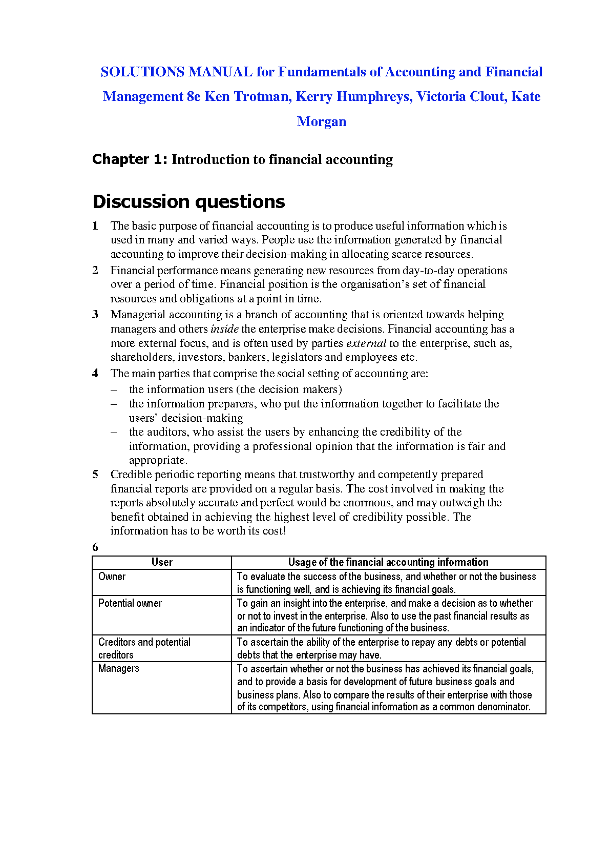 Solutions Manual for Fundamentals of Accounting and Financial Management, 8th Edition by Ken Trotman, Kerry Humphreys, Victoria Clout, and Kate Morgan