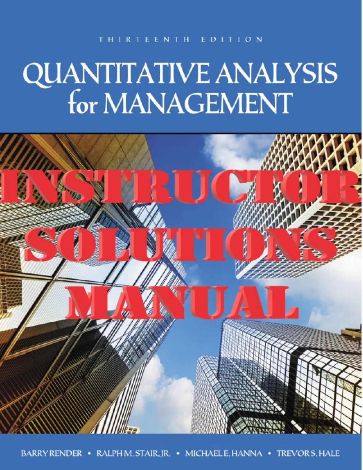 Solutions Manual for Quantitative Analysis for Management, 13th Edition by Barry Render, Ralph M. Stair Jr., Michael E. Hanna, and Trevor S. Hale