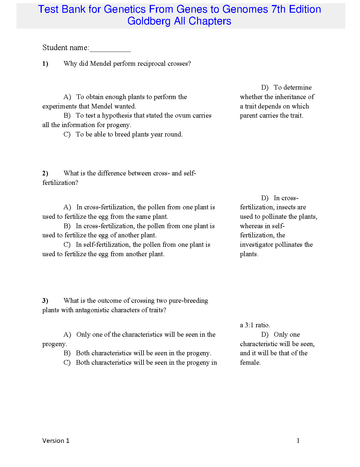 Test Bank for Genetics: From Genes to Genomes, 7th Edition by Leland H. Hartwell, Michael L. Goldberg, Janice A. Fischer, and Leroy Hood