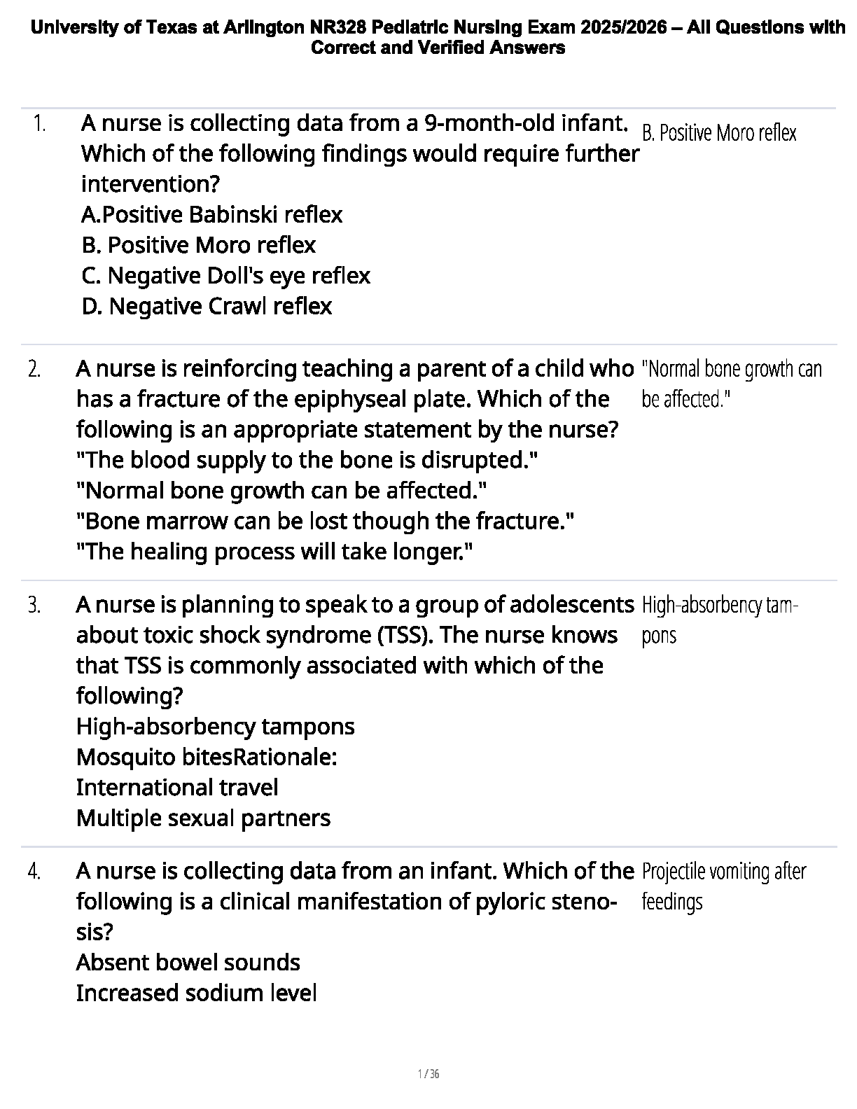 NR328 Pediatric Nursing Test Bank 2025/2026 | University of Texas at Arlington | Questions & Verified Answers
