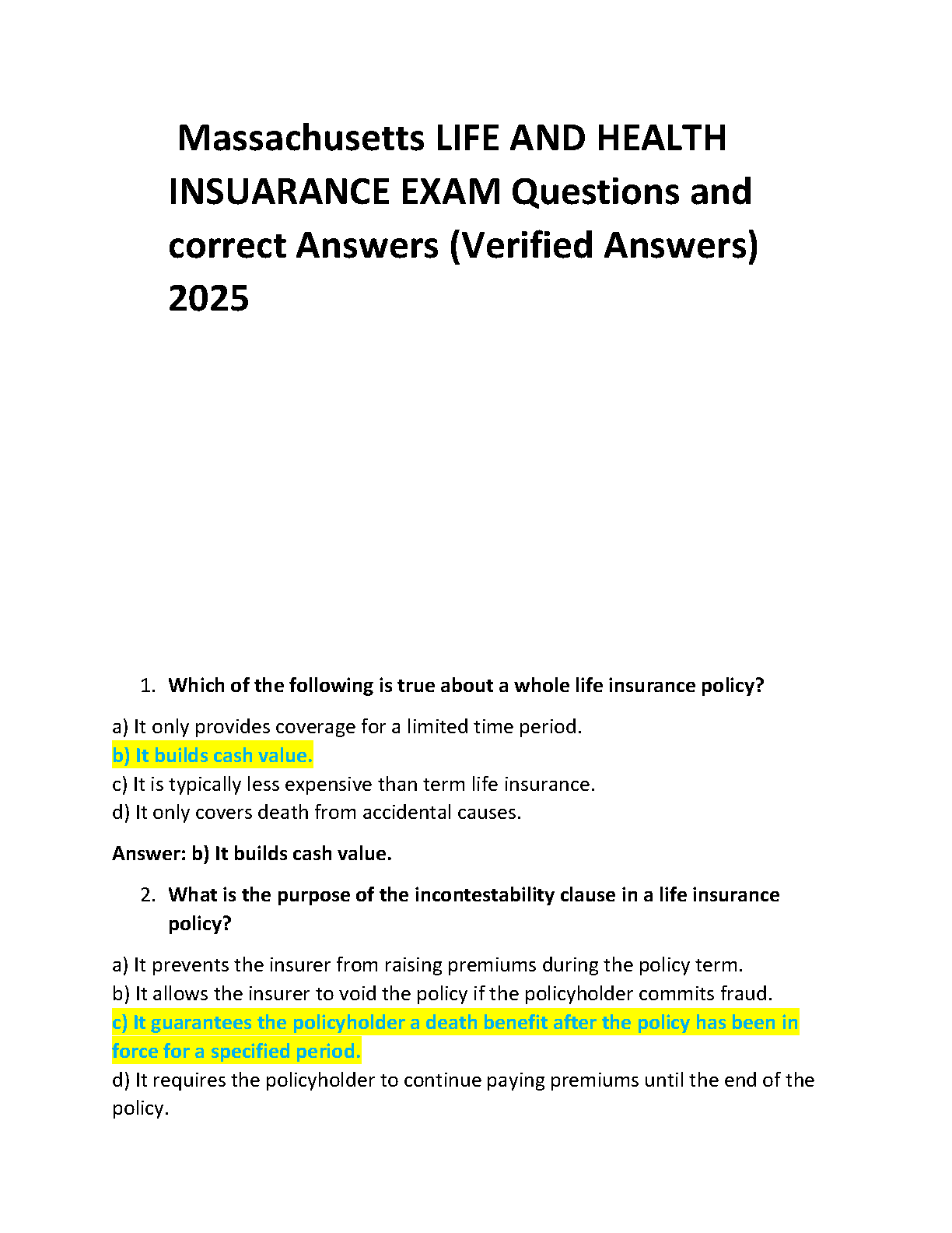 Master the Massachusetts Life & Health Insurance Exam 2025: A Comprehensive Test Bank with Verified Questions and Answers
