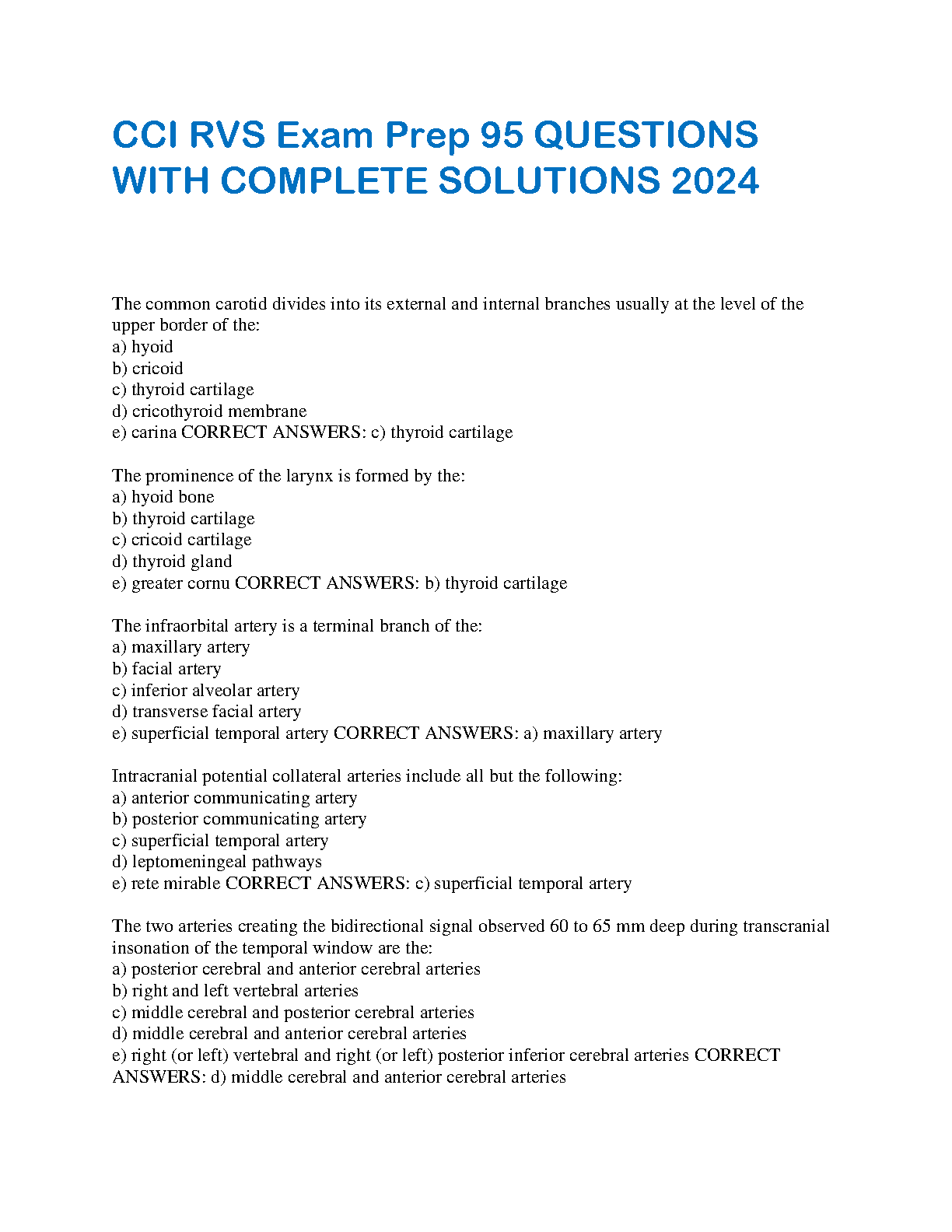 CCI RVS Exam 2024 Test Bank: 95 Questions and Verified Answers for Registered Vascular Specialist Prep