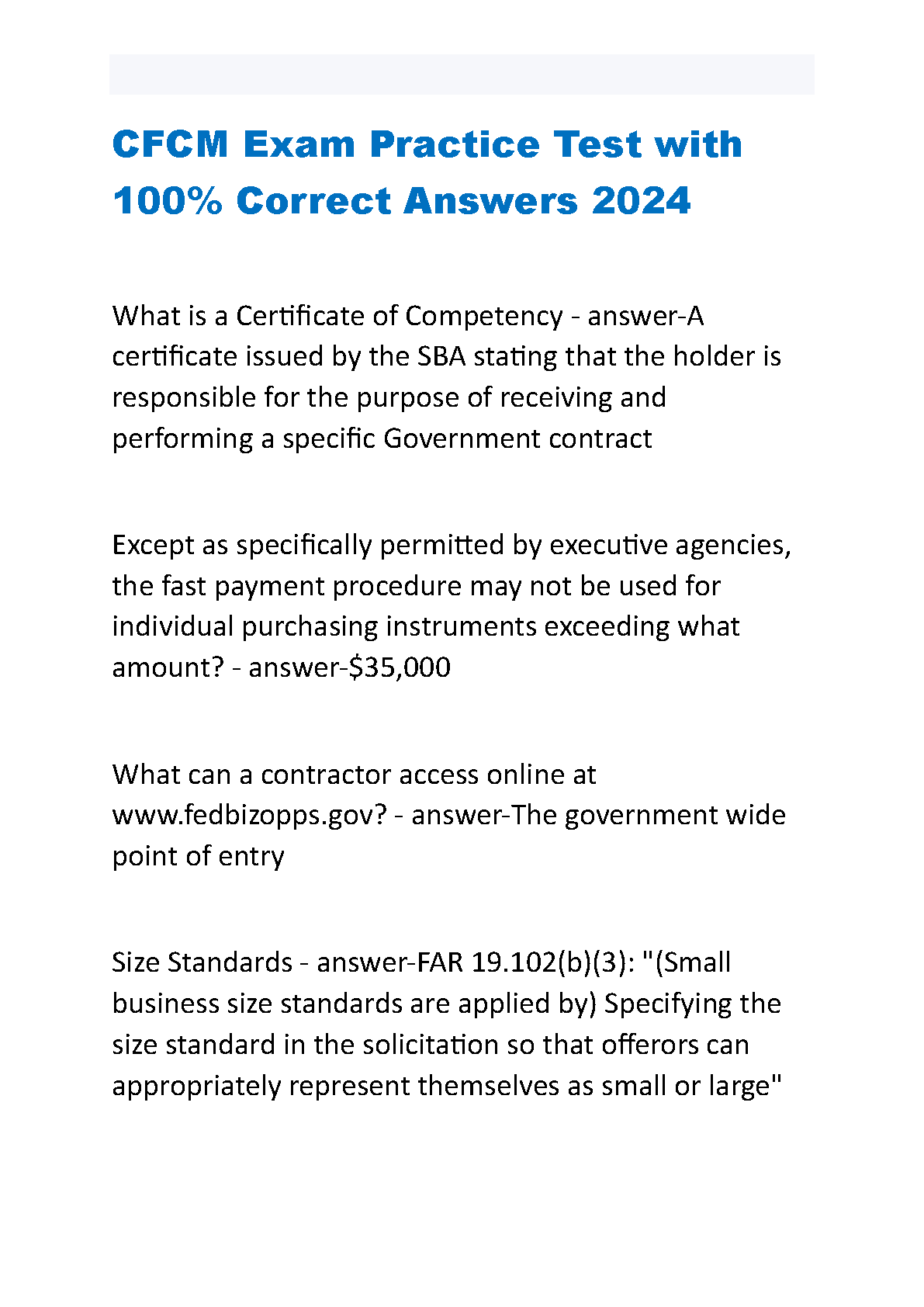 Get ready to earn your Certified Federal Contracts Manager (CFCM) credential with our newly updated 2025/2026 practice test bank. This comprehensive resource is packed with hundreds of exam-style questions and 100% verified correct answers, covering all essential topics from the NCMA's Contract Management Body of Knowledge (CMBOK®). Designed to simulate the real exam experience, this study guide helps you identify your strengths and weaknesses, master complex concepts like FAR regulations, and build the confidence needed to pass on your very first attempt. Don't risk a resit—invest in the ultimate study tool and fast-track your career in federal contract management today!