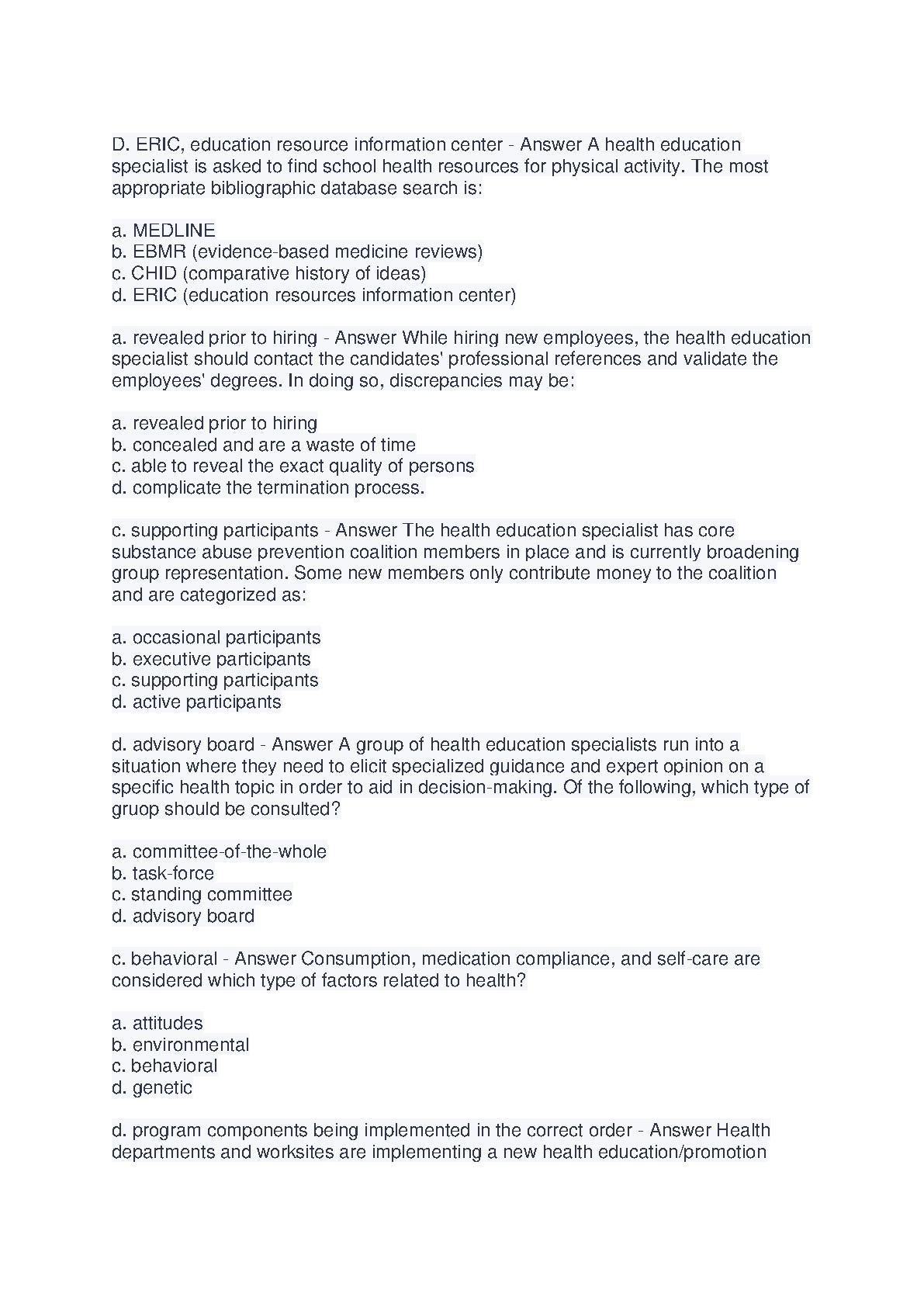 CHES Test Bank for The Health Education Specialist: A Companion Guide for Professional Excellence, 7th Edition by Randall R. Cottrell, James F. McKenzie, and Denise M. Seabert - Verified Practice Questions & Answers