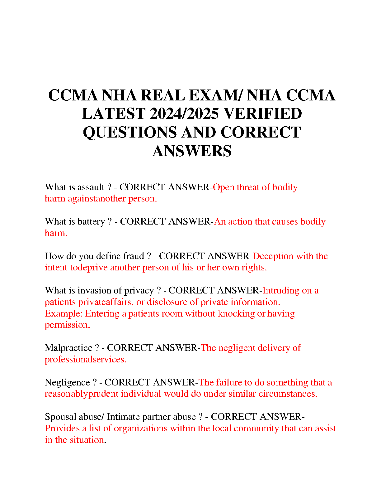 NHA CCMA Test Bank 2024/2025: Comprehensive Exam Questions with Verified Answers