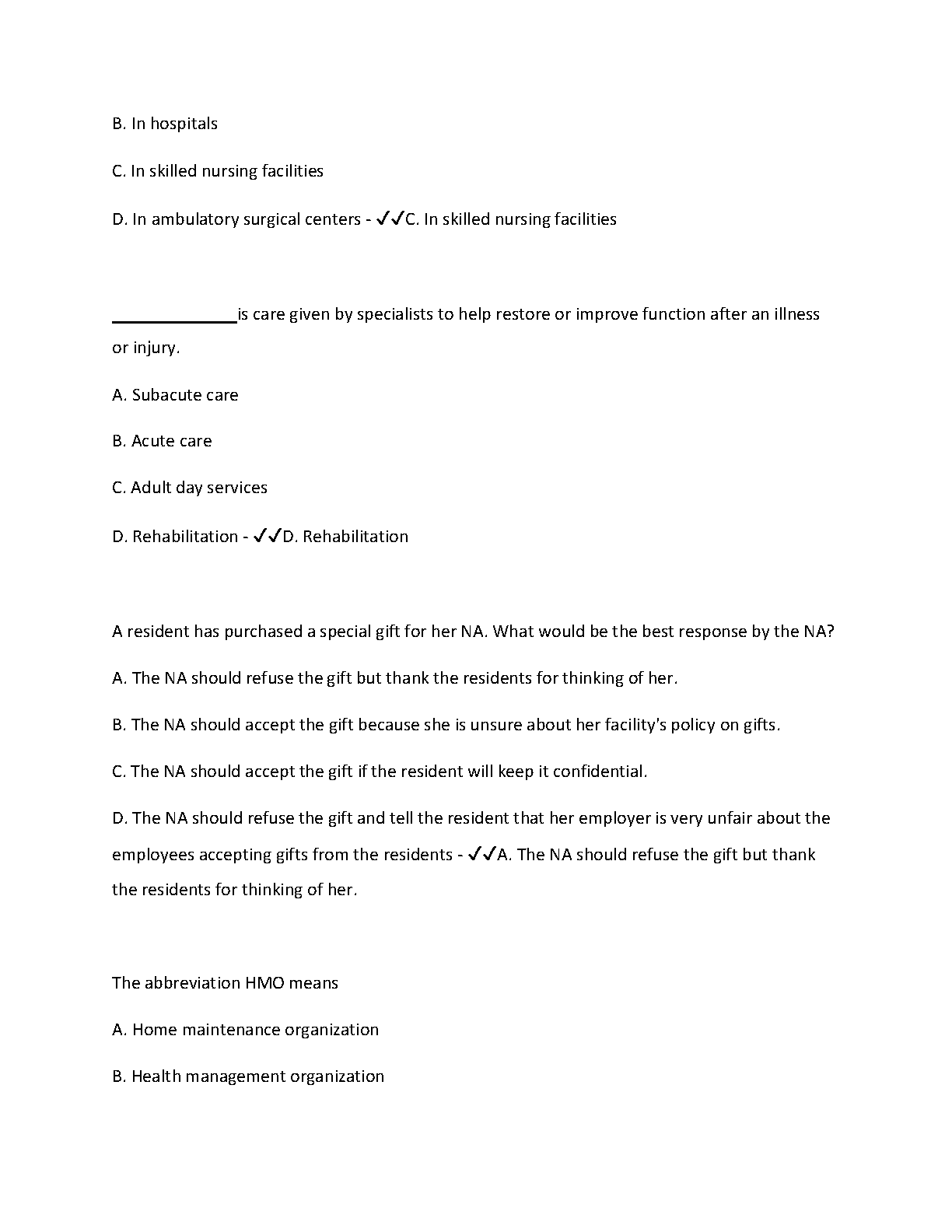 Ace your Certified Nursing Assistant exam with our premier test bank for the Oregon State CNA Exam 2024. This comprehensive study guide features 400 targeted practice questions complete with 100% accurate and verified answers. Designed to help you master key concepts and build confidence, this resource is your ultimate tool for passing the exam on your first attempt and securing an A+. Get instant access to the most up-to-date material and start your path to success today!