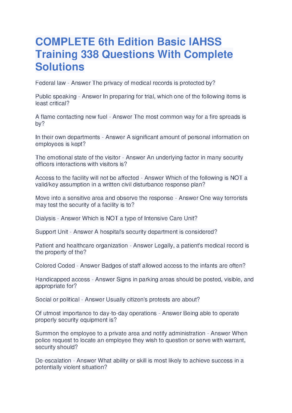 Excel in your healthcare security certification with this comprehensive test bank for the IAHSS Basic Training, 6th Edition. This essential study guide features a complete collection of 338 exam-style questions, each with a detailed and verified solution. Designed to cover every core topic, this resource will build your confidence, deepen your understanding, and provide the targeted practice you need to pass your IAHSS exam on the first attempt. Get instant access to the ultimate preparation tool and take the next step in your security career.
