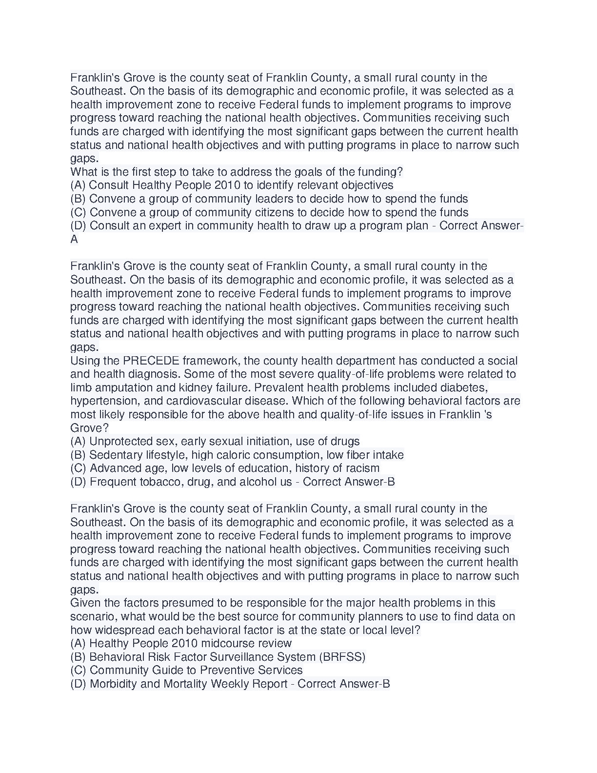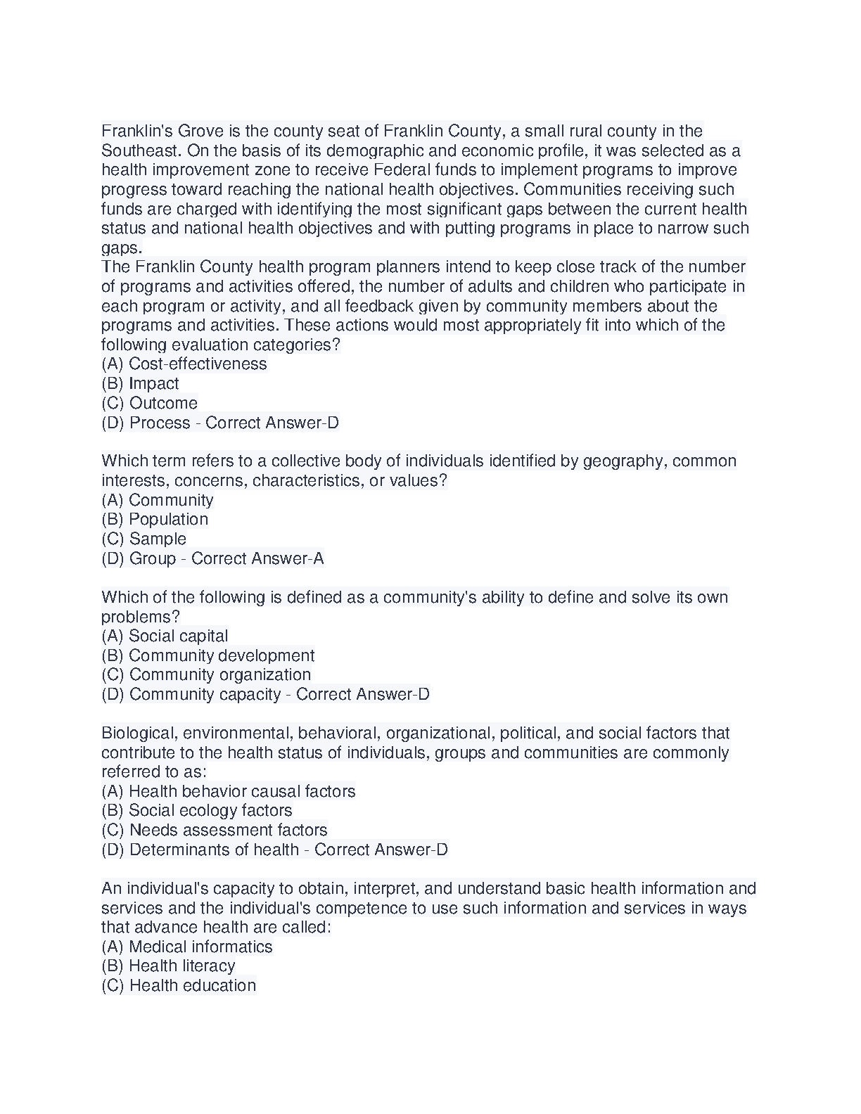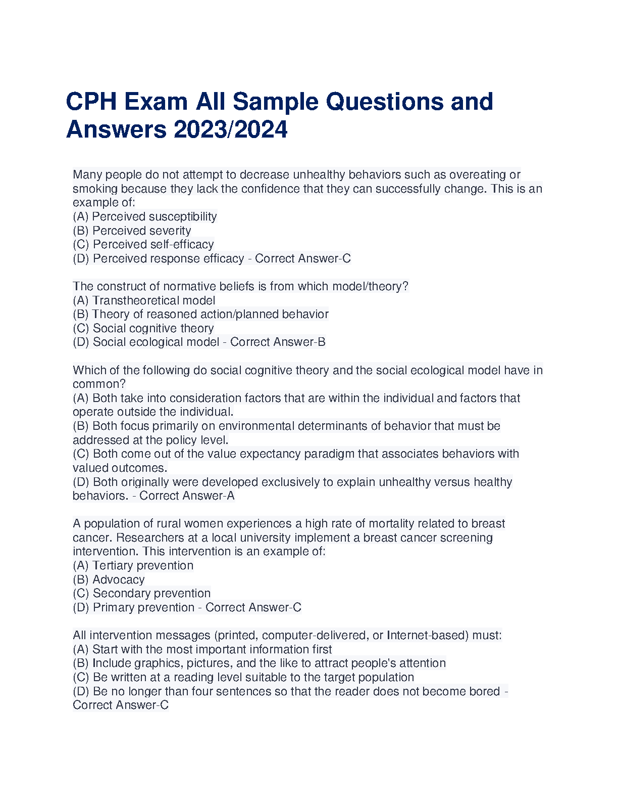 Prepare to ace your Certified in Public Health (CPH) exam with our newly updated 2025/2026 Test Bank. This comprehensive resource is packed with a wide range of sample questions and their verified correct answers, covering all essential domains of public health. Dive deep into topics like health behavior theories, ecological models, levels of prevention, and effective intervention strategies. Each question is designed to mirror the actual CPH exam format, providing you with the practice and confidence needed to succeed. Don't leave your certification to chance—master the material, avoid costly resits, and pass your CPH exam on the very first attempt with this essential study guide.