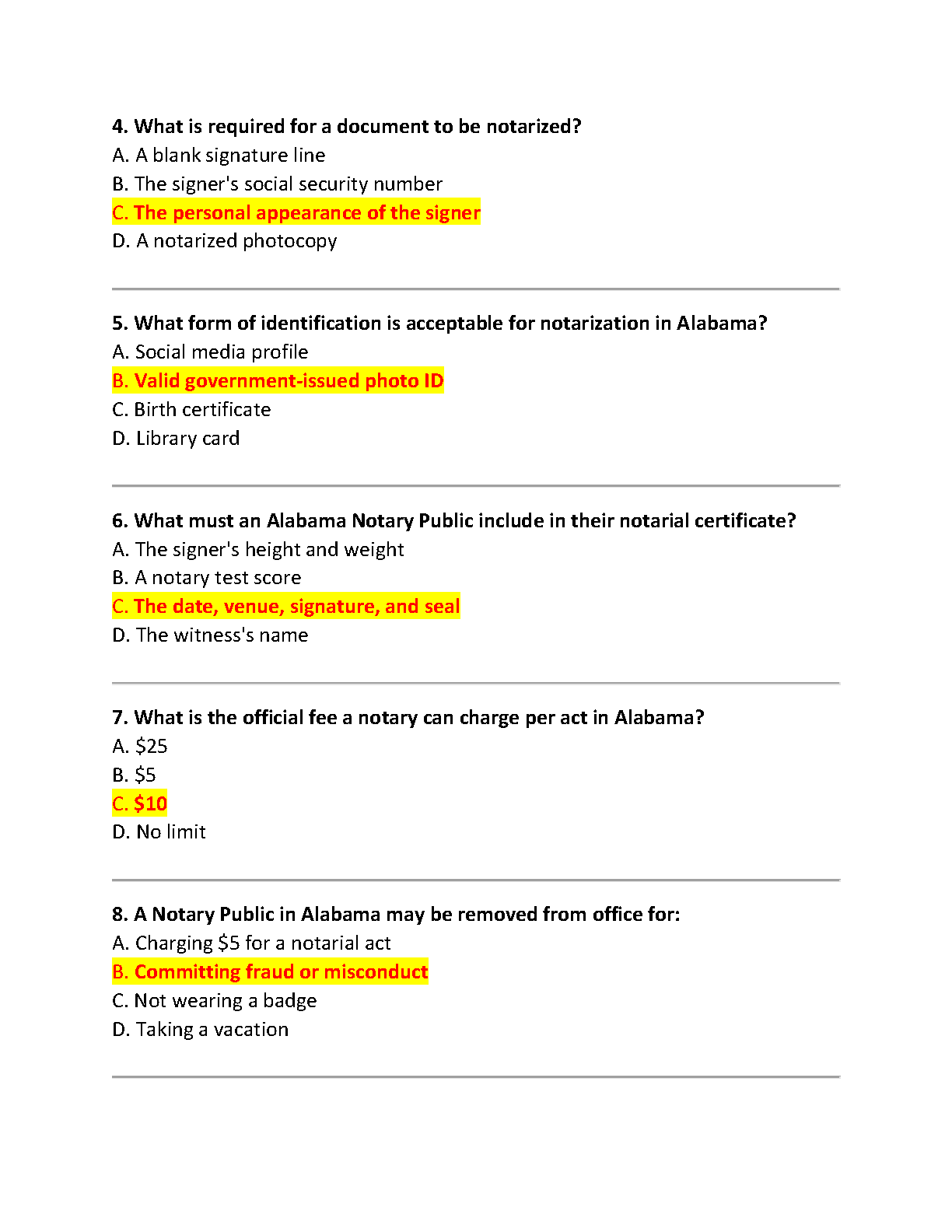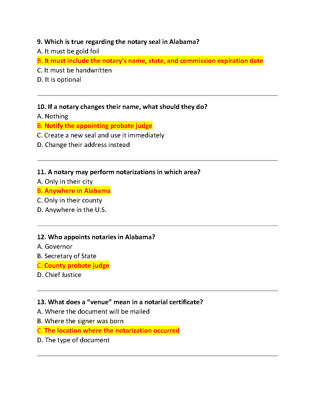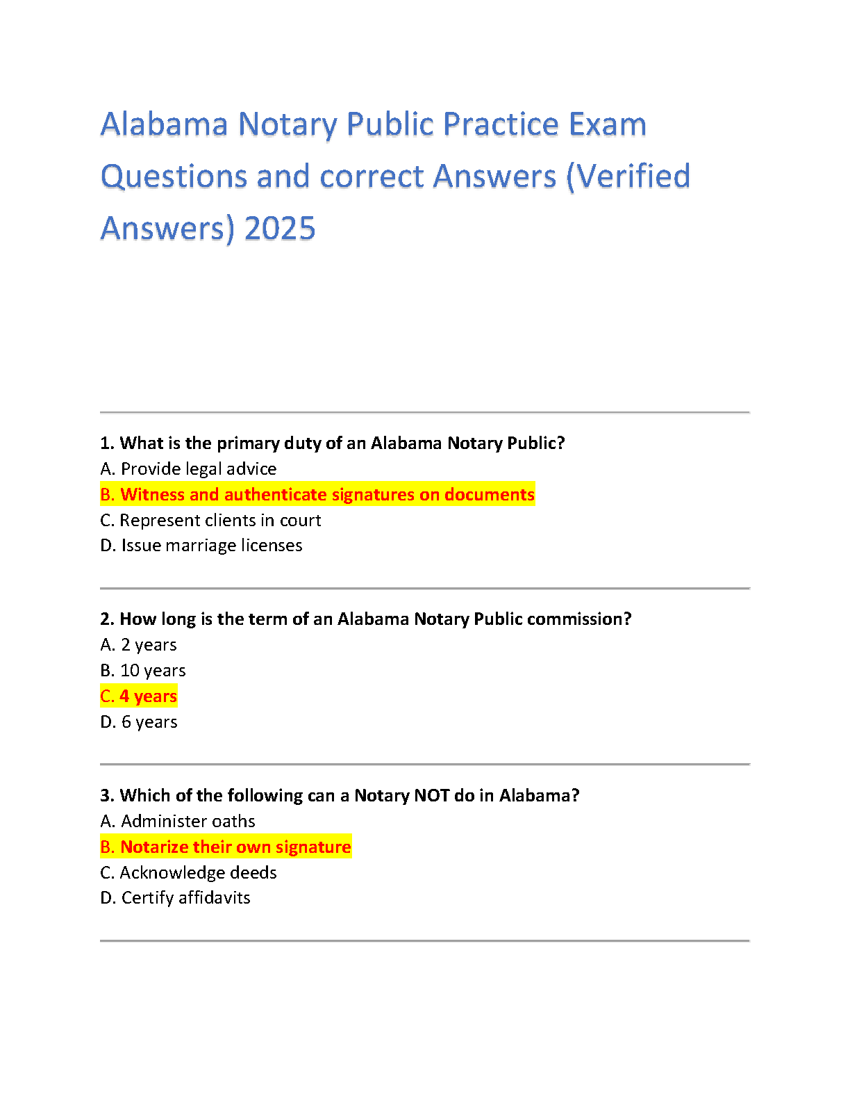 Alabama Notary Public Exam 2025 Study Guide: Verified Questions & Answers to Pass on the First Attempt