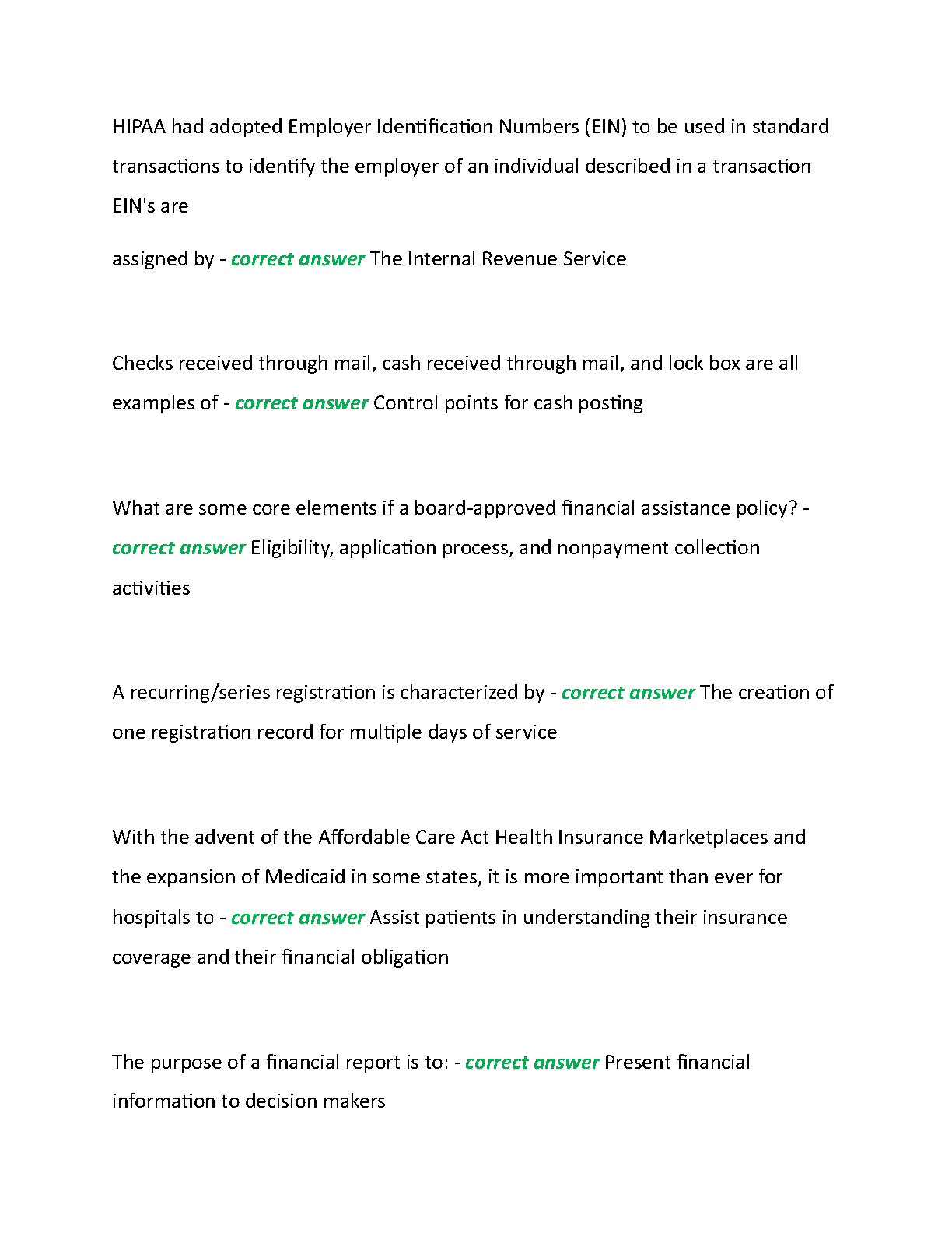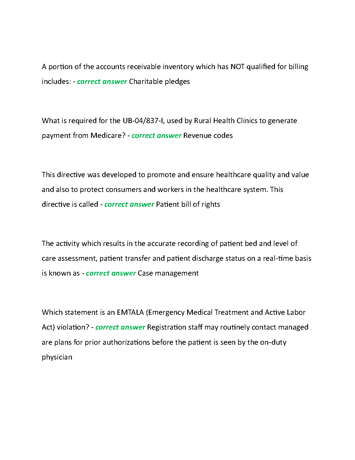 Master the material for your Certified Revenue Cycle Representative (CRCR) exam with our latest 2024-2025 Test Bank. This comprehensive resource, based on the Healthcare Financial Management Association (HFMA) curriculum, is packed with verified questions and detailed answers covering all key areas like healthcare finance, patient registration, billing, and compliance. Our study guide is expertly designed to provide you with the practice and knowledge needed to approach your certification exam with confidence. Get the edge you need to succeed in the revenue cycle management field with this essential preparation tool.