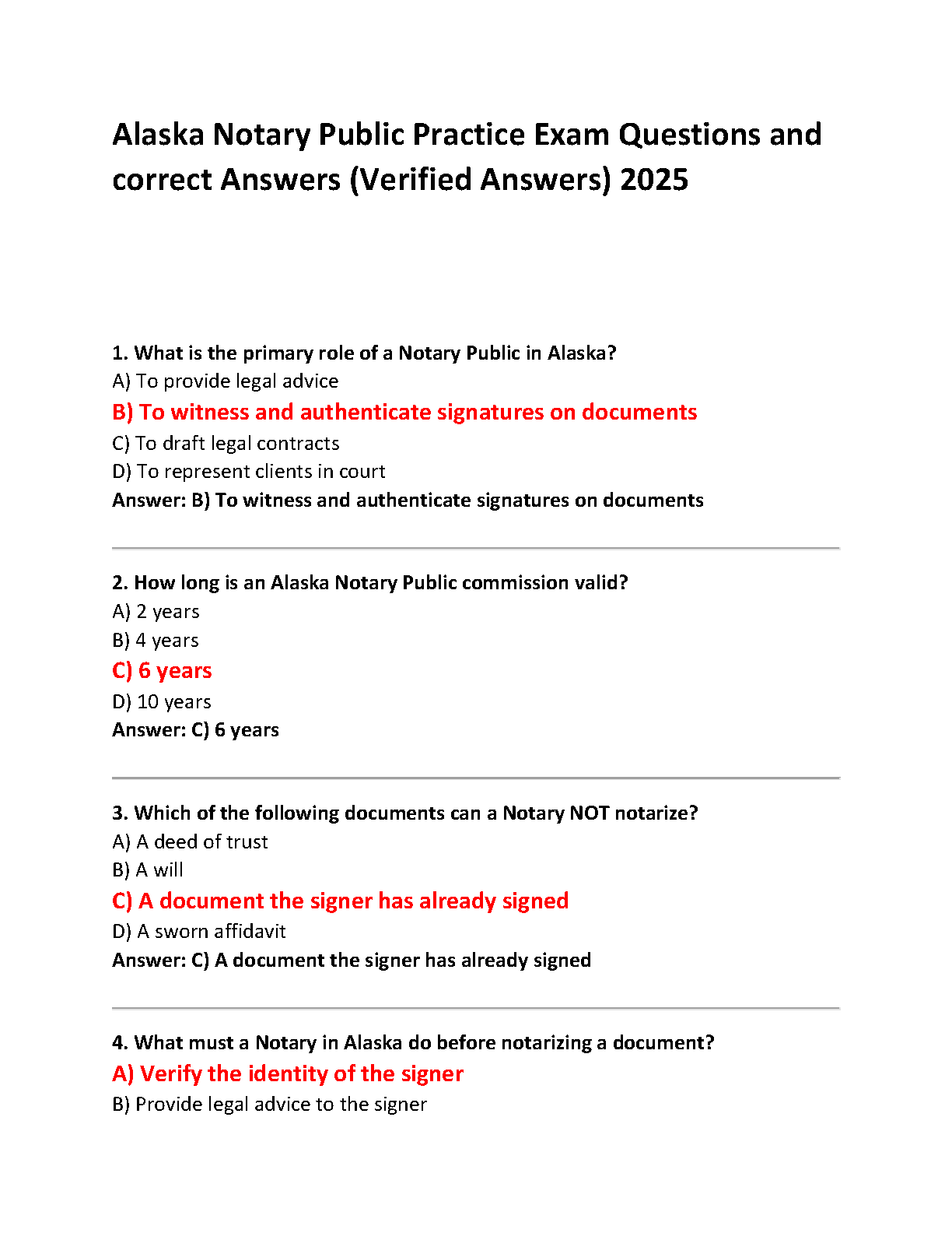Alaska Notary Public Exam 2025-2026: Verified Questions and Answers Test Bank to Pass on Your First Try