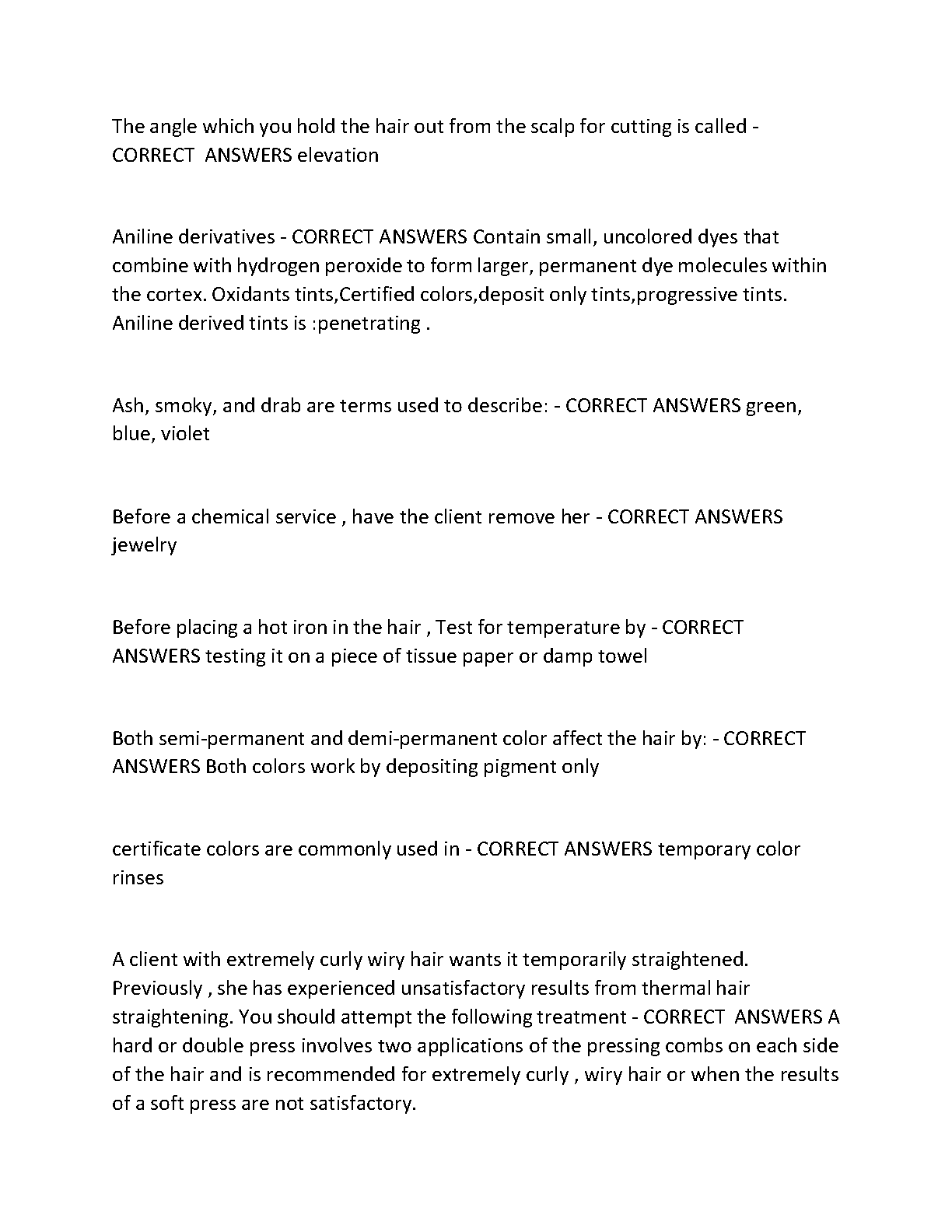 Ace your Florida State Board of Cosmetology Clinical Exam with our comprehensive test bank. This essential study guide is packed with the latest, verified questions and 100% correct answers, covering all critical topics you'll face on test day. Master key concepts such as chemical services (permanent waves, relaxers), hair coloring theory, client safety, and proper procedures. This resource is meticulously designed to help you study smarter, build your confidence, and pass your state board on the very first attempt. Get the ultimate edge you need to become a licensed cosmetologist in Florida!