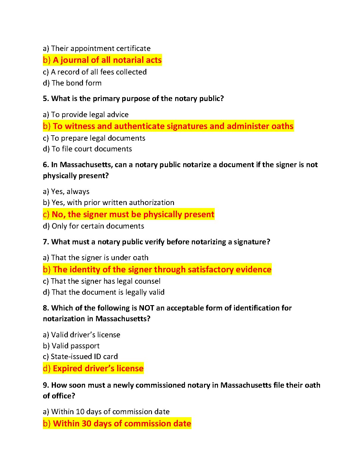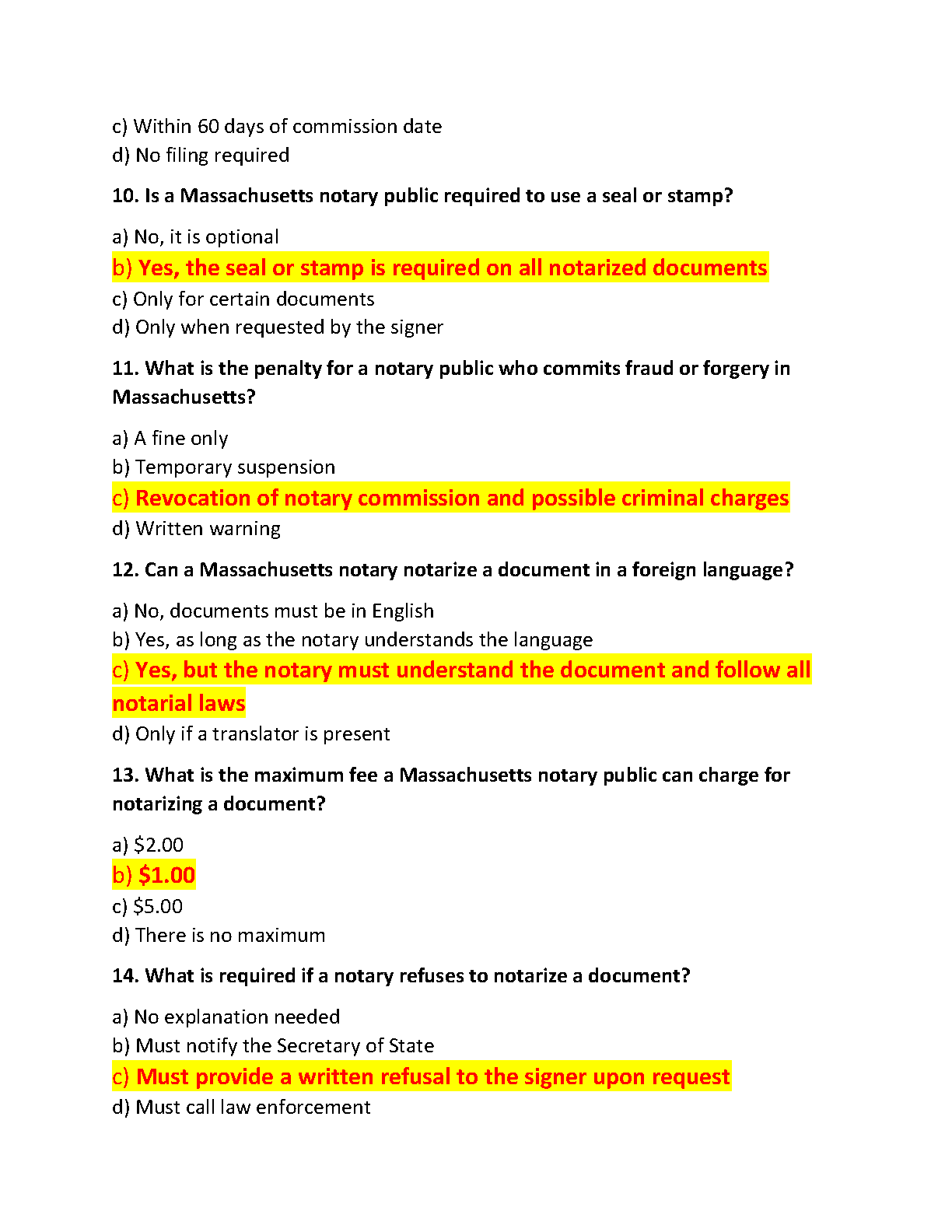 Ace your Massachusetts Notary Public exam on the first try with our 2025 test bank! This comprehensive resource is expertly designed to provide you with everything you need for success. It includes a complete set of practice questions that mirror the actual exam, covering all essential topics like eligibility, duties, and record-keeping. Each question comes with a verified, correct answer, ensuring you study the right information. Prepare with confidence and pass your exam easily by downloading this essential study guide today!