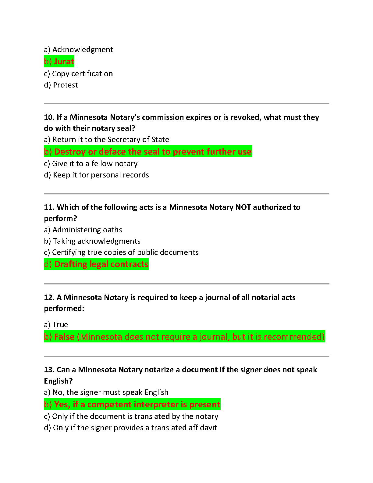 Minnesota Notary Public Exam 2025-2026: Verified Practice Questions and Answers Test Bank