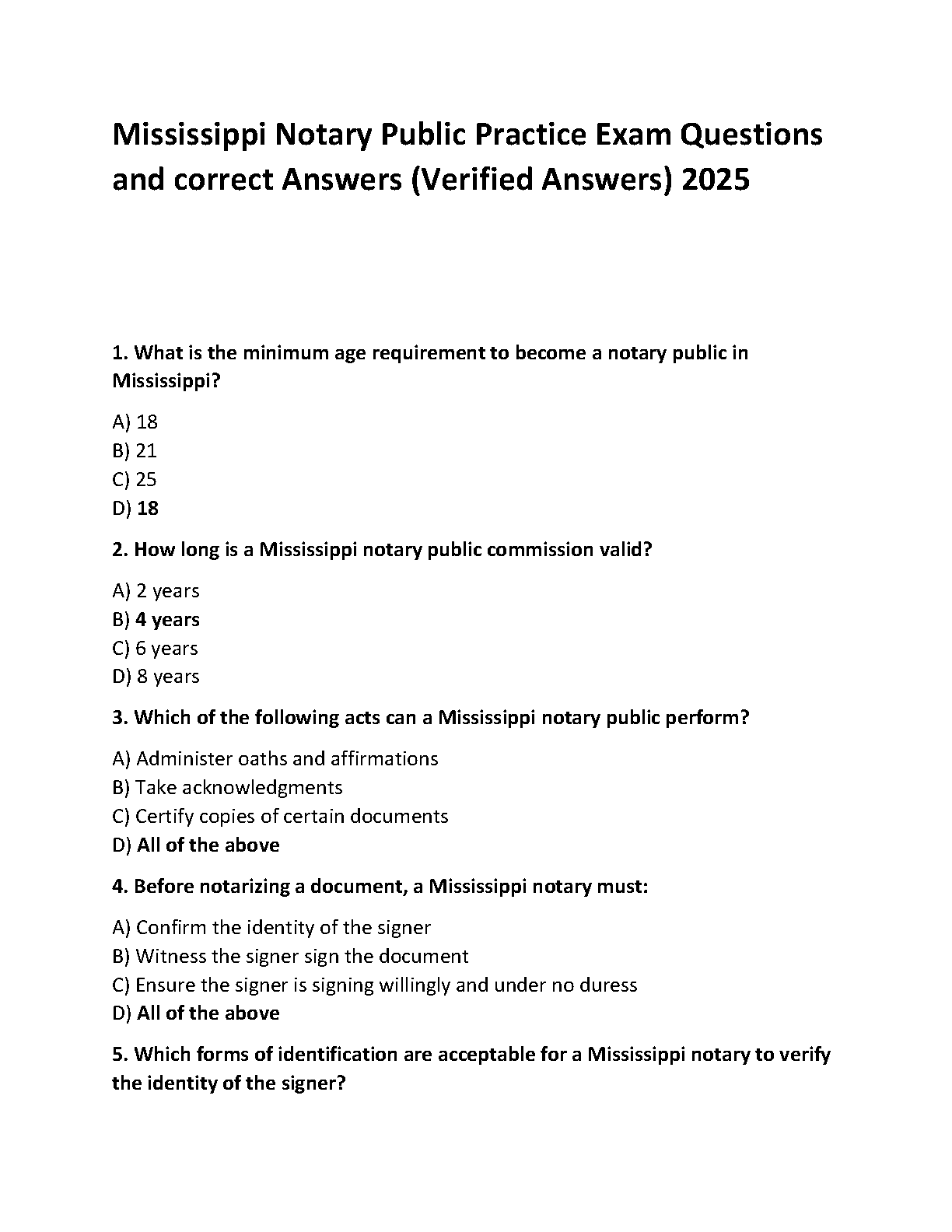 Ace your Mississippi Notary Public exam with this comprehensive test bank, fully updated for the 2025-2026 testing cycle. This essential study resource provides a wide range of practice questions, complete with verified correct answers, covering all critical topics you'll face on the test. Master key areas such as age requirements, commission validity, permissible notarial acts, and proper signer identification procedures. Our meticulously crafted questions mirror the actual exam, giving you the confidence and knowledge needed to pass on your first attempt and avoid resits. Start your journey to becoming a commissioned Mississippi Notary Public today!