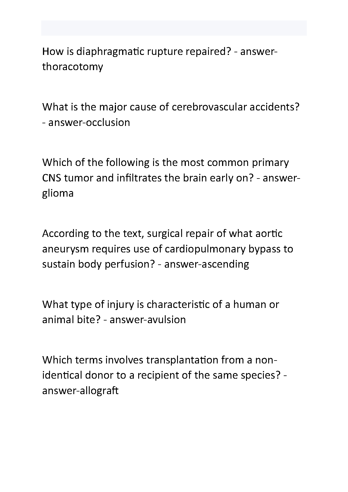 Master your CSFA certification with our latest 2025/2026 test bank, expertly crafted to guarantee your success. This comprehensive study guide features an extensive collection of practice questions paired with 100% correct, verified answers, covering all essential topics you'll face on the Certified Surgical First Assistant exam. Designed to help you pass on your first attempt and avoid costly resits, this resource provides the A+ graded material needed to build your confidence and ace your certification. Get immediate access to the ultimate preparation tool and take the next step in your surgical career.
