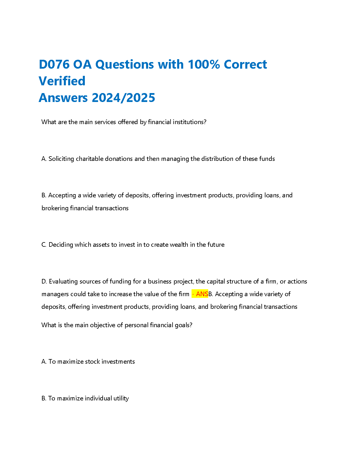Master WGU D076 Finance for Managers: 2025/2026 OA Test Bank with 100% Verified Questions and Answers for First-Try Success