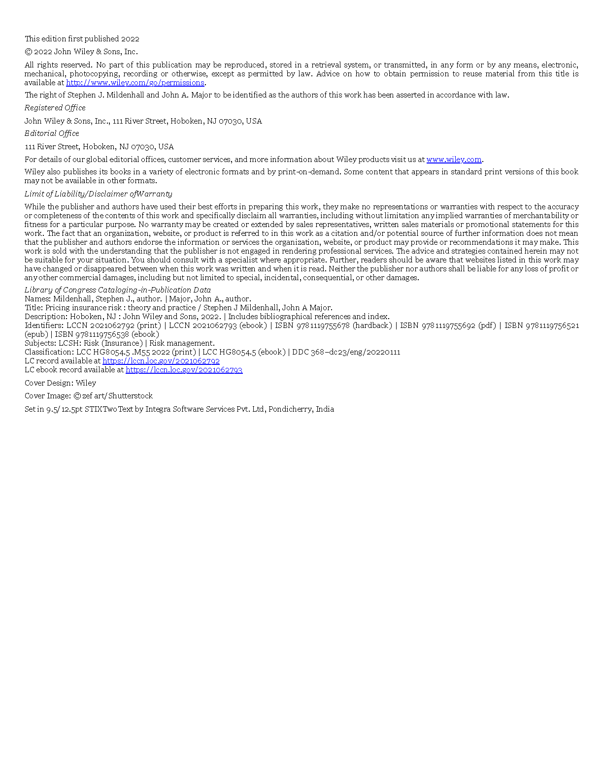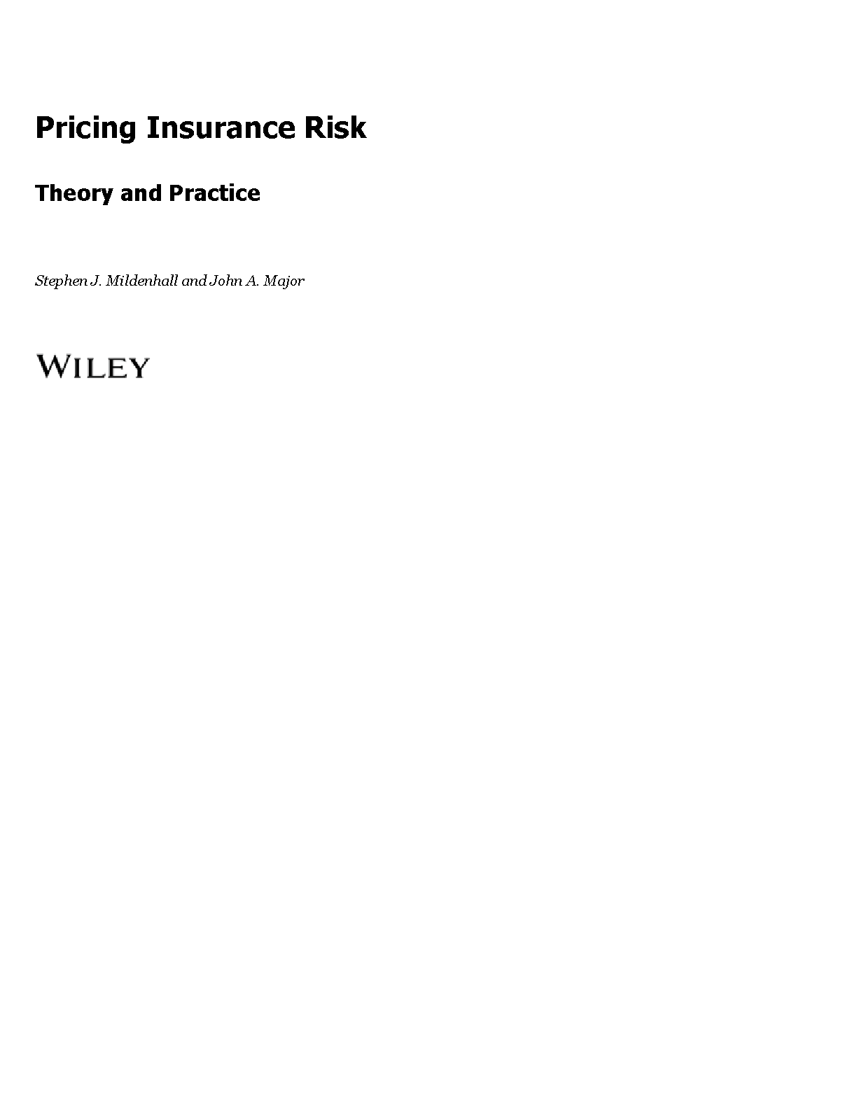 Test Bank for Pricing Insurance Risk: Theory and Practice, 1st Edition, by Stephen J. Mildenhall and John A. Major