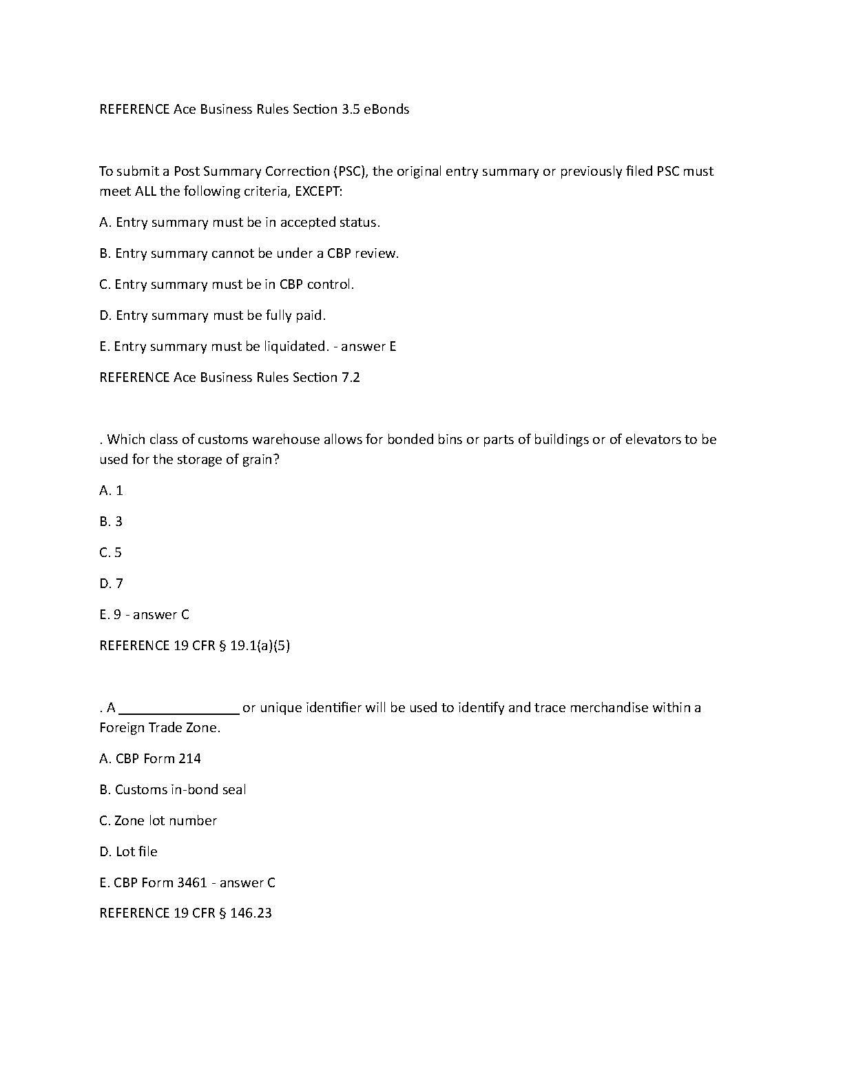 Get ready to ace the Customs Broker License Examination (CBLE) with our comprehensive test bank for the October exam. This essential study guide is packed with practice questions and 100% correct, verified answers to ensure you are fully prepared. Master key topics including Entry Filing procedures, navigating the 19 Code of Federal Regulations (CFR), collections, Ace Business Rules, and Electronic Data Interchange (EDI). Designed to mirror the actual exam format, this resource is your ultimate tool to study effectively, boost your confidence, and pass the CBLE on your very first try. Avoid the stress of resits and secure your license with this top-tier exam preparation material.