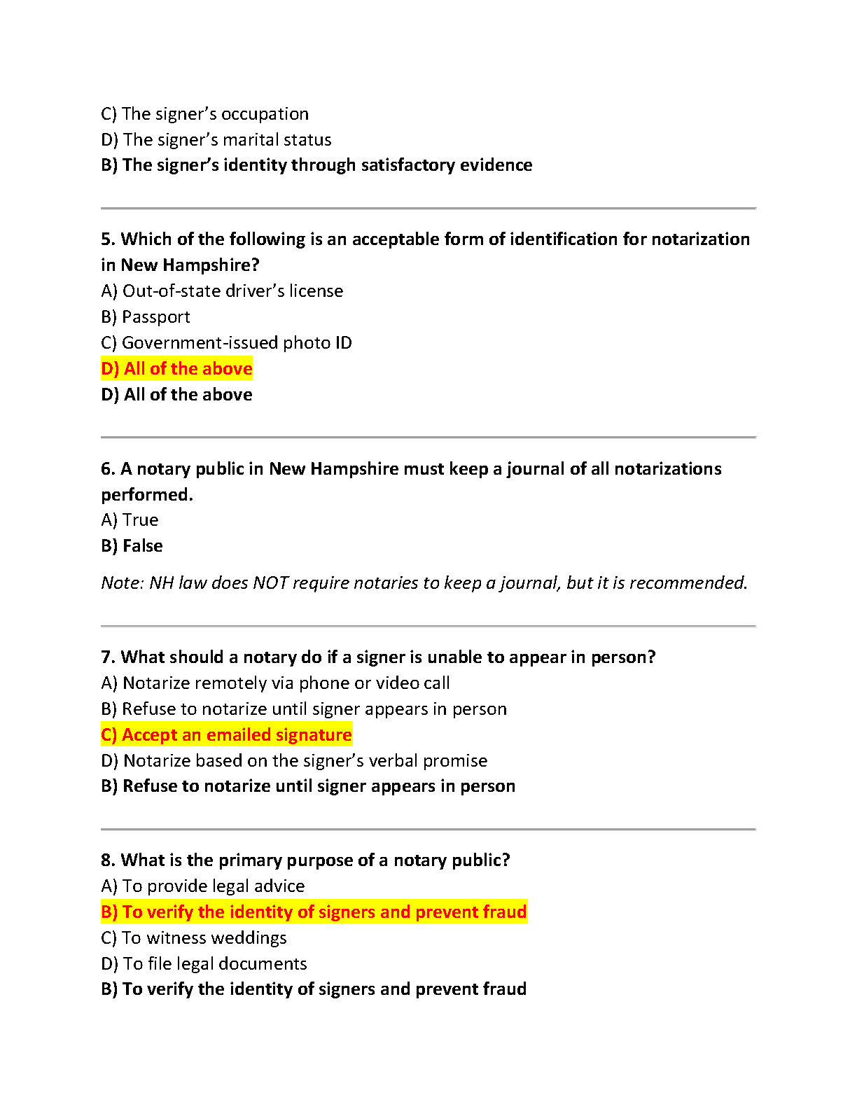 New Hampshire Notary Public Exam 2025 Test Bank: Comprehensive Practice Questions with Verified Answers