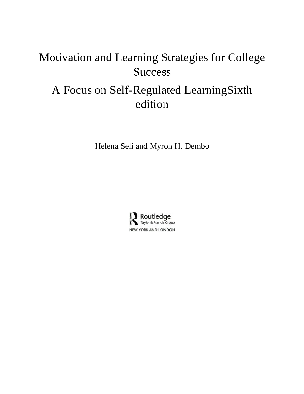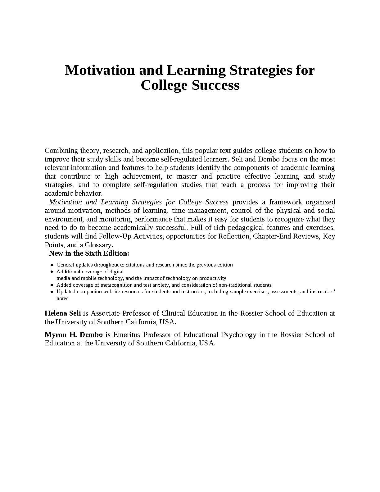 Test Bank for Motivation and Learning Strategies for College Success: A Focus on Self-Regulated Learning, 6th Edition by Helena Seli and Myron H. Dembo