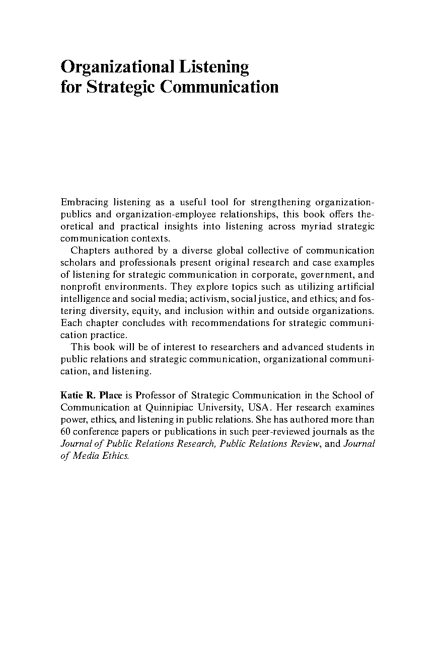 Organizational Listening for Strategic Communication, 1st Edition by Katie R. Place - 2025/2026 Study Guide to Pass Exams