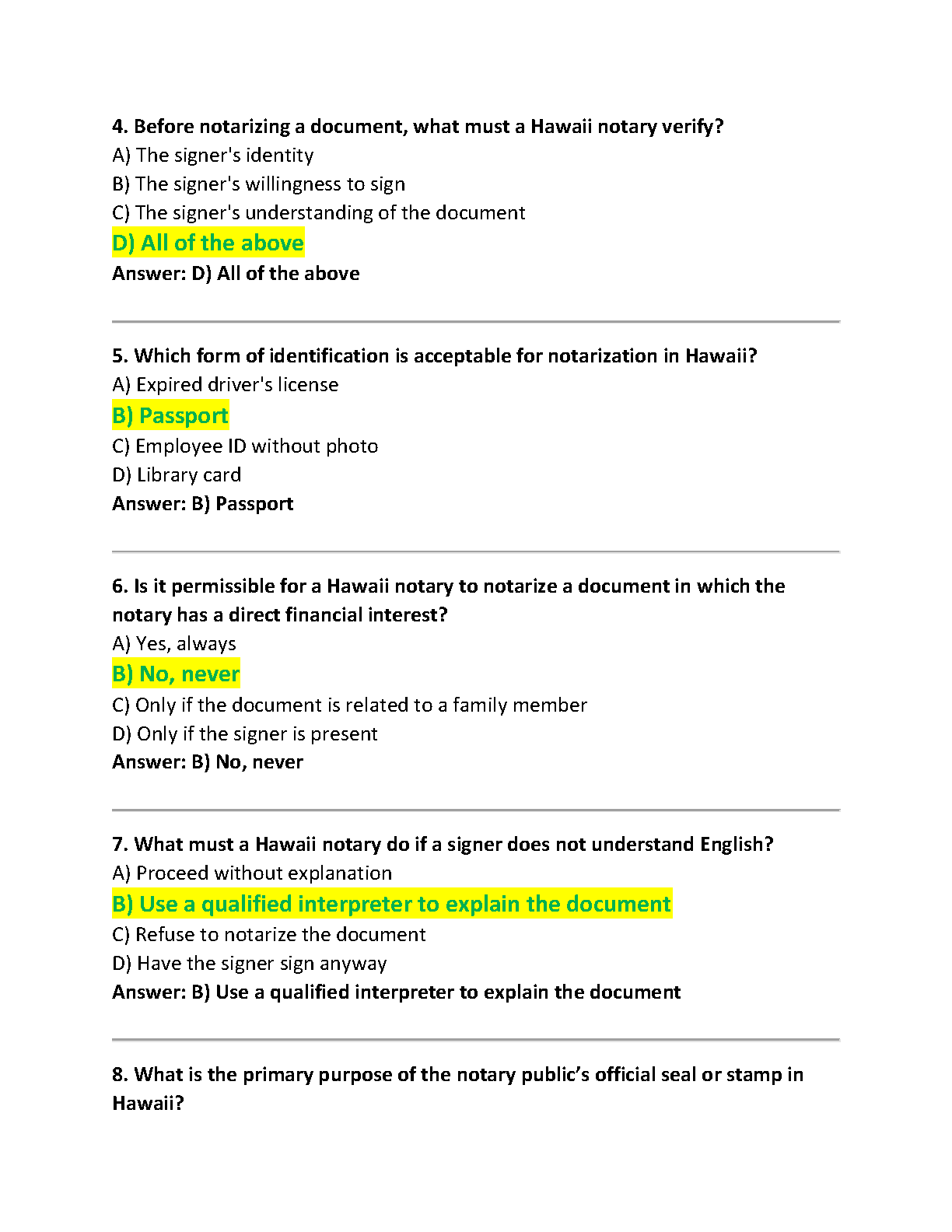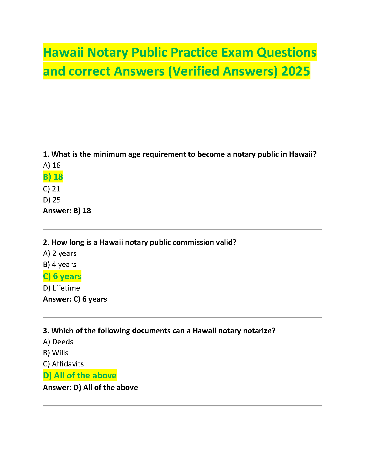 Hawaii Notary Public Practice Exam 2025: Test Bank with Verified Questions and Correct Answers