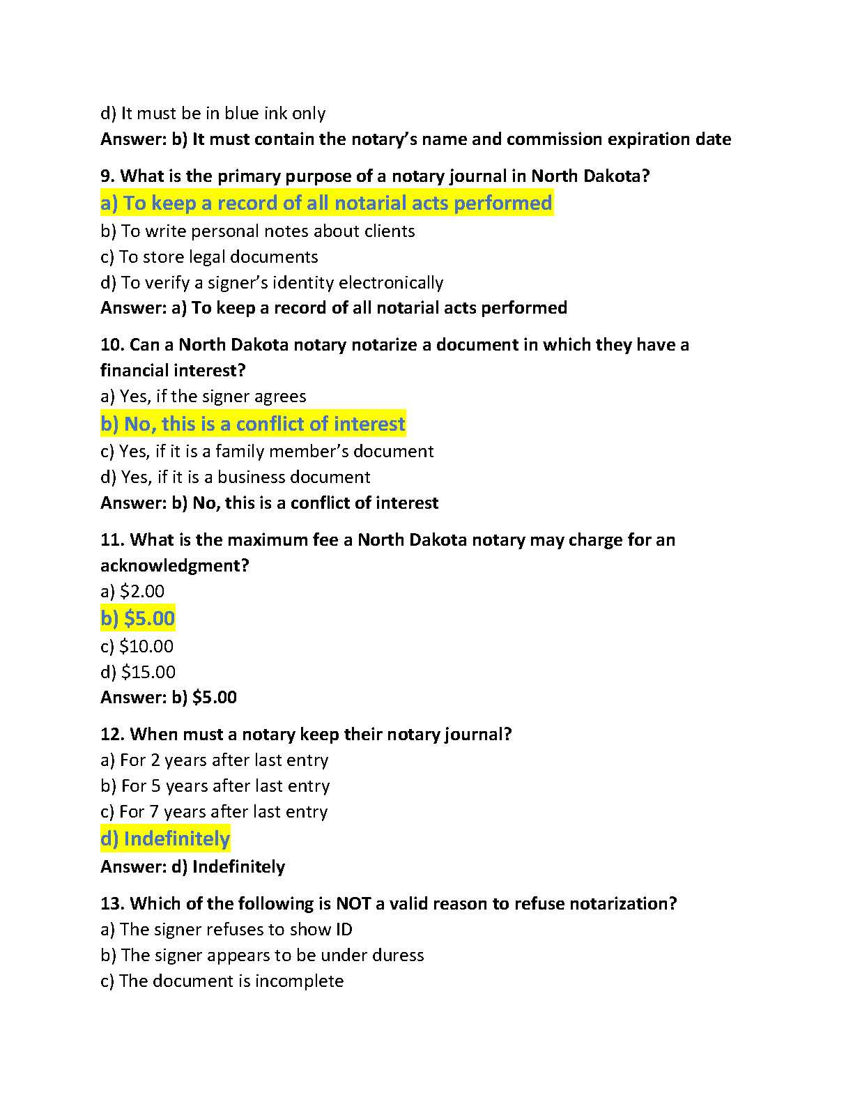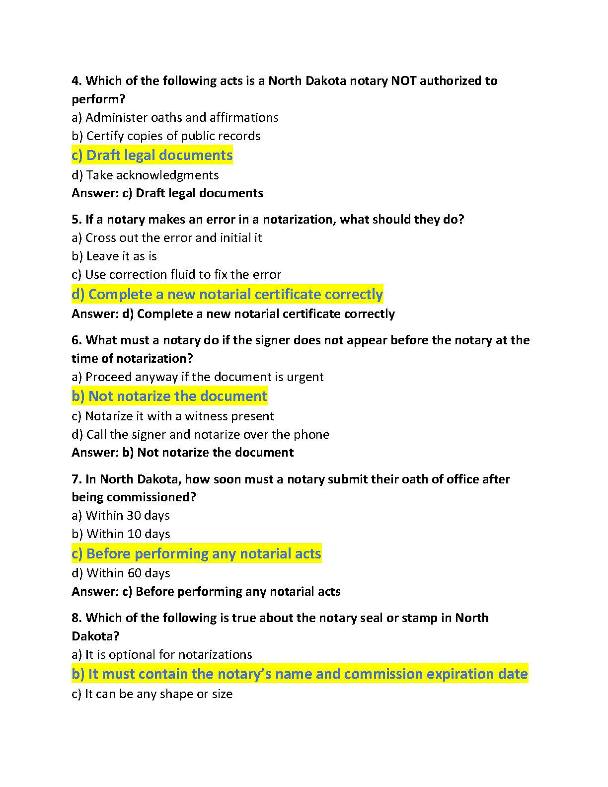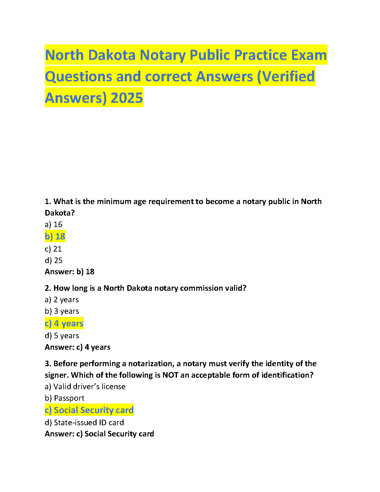 North Dakota Notary Public Exam 2025 Test Bank with Verified Questions and Correct Answers