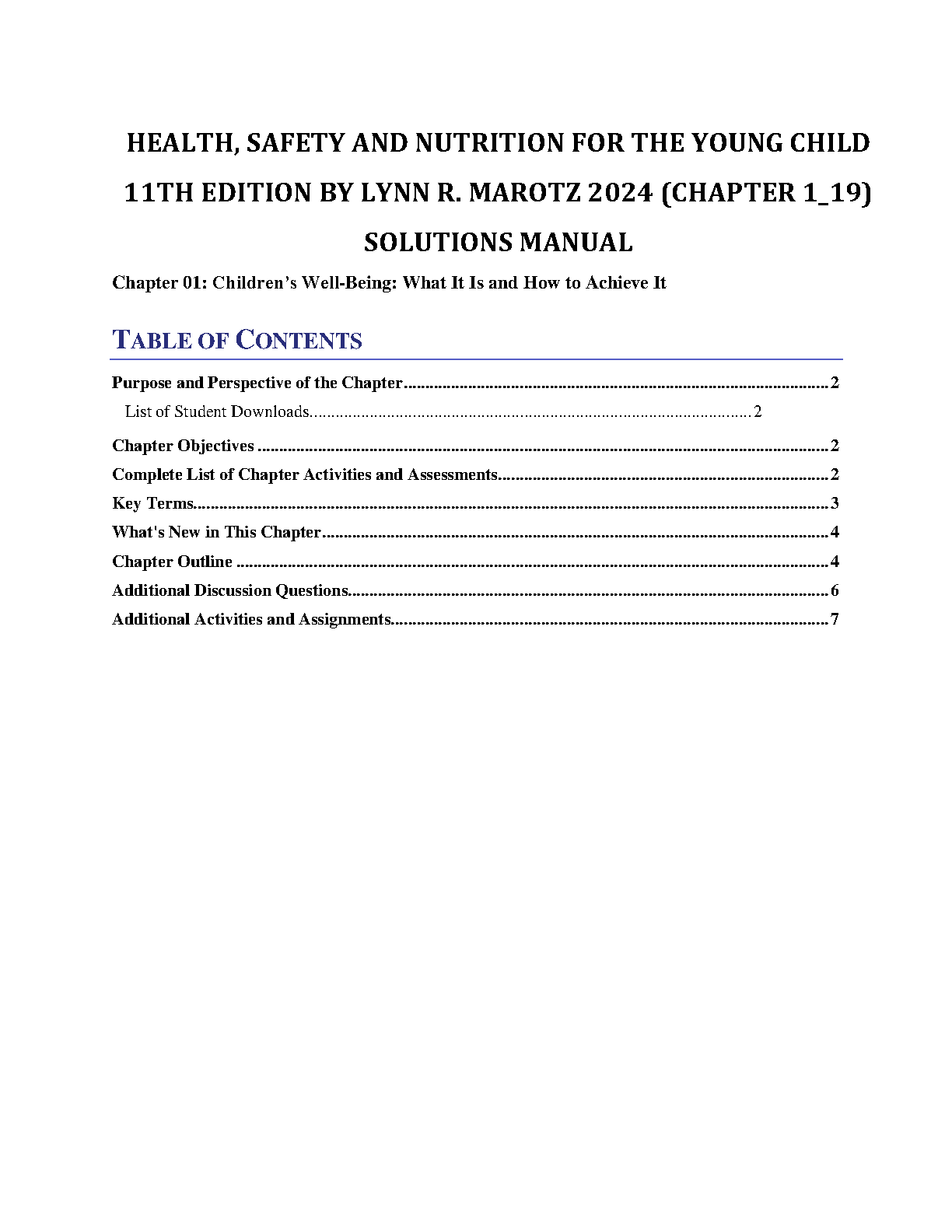Solutions Manual for Health, Safety, & Nutrition for the Young Child, 11th Edition by Lynn R. Marotz, Jeanettia M. Rush