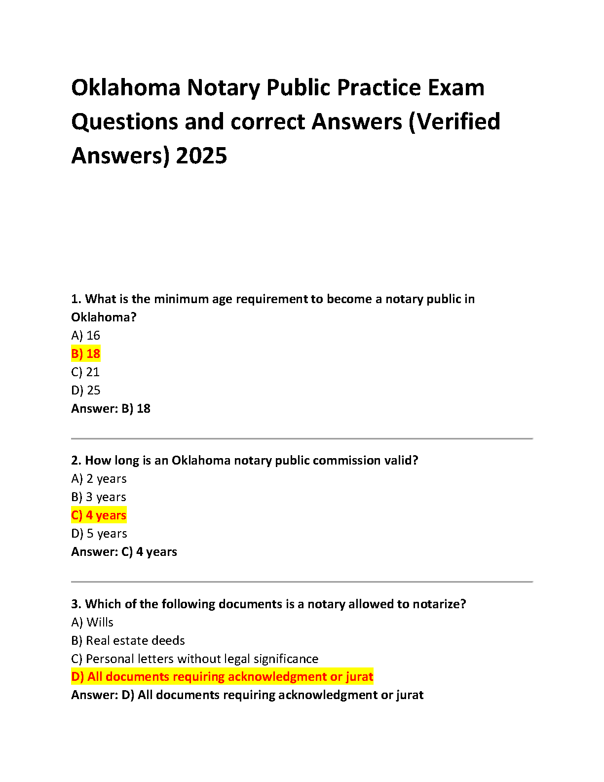 Oklahoma Notary Public Practice Exam 2025 Test Bank: Verified Questions & Answers