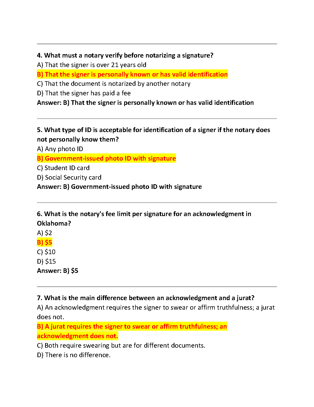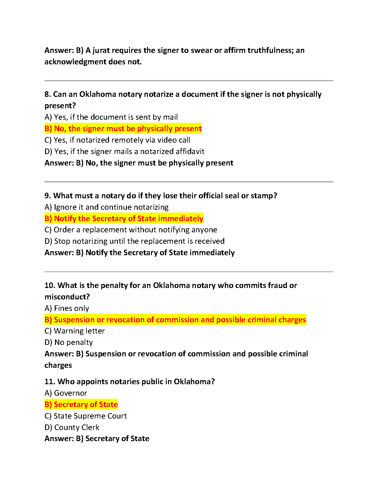 Master the Oklahoma Notary Public exam with our latest 2025 Test Bank. This essential study resource provides a comprehensive set of practice questions complete with verified, correct answers to ensure you are fully prepared. Designed to boost your confidence and help you pass on your first attempt, this guide covers key topics you'll face on the actual exam. Secure your notary commission by studying with the most up-to-date materials available.
