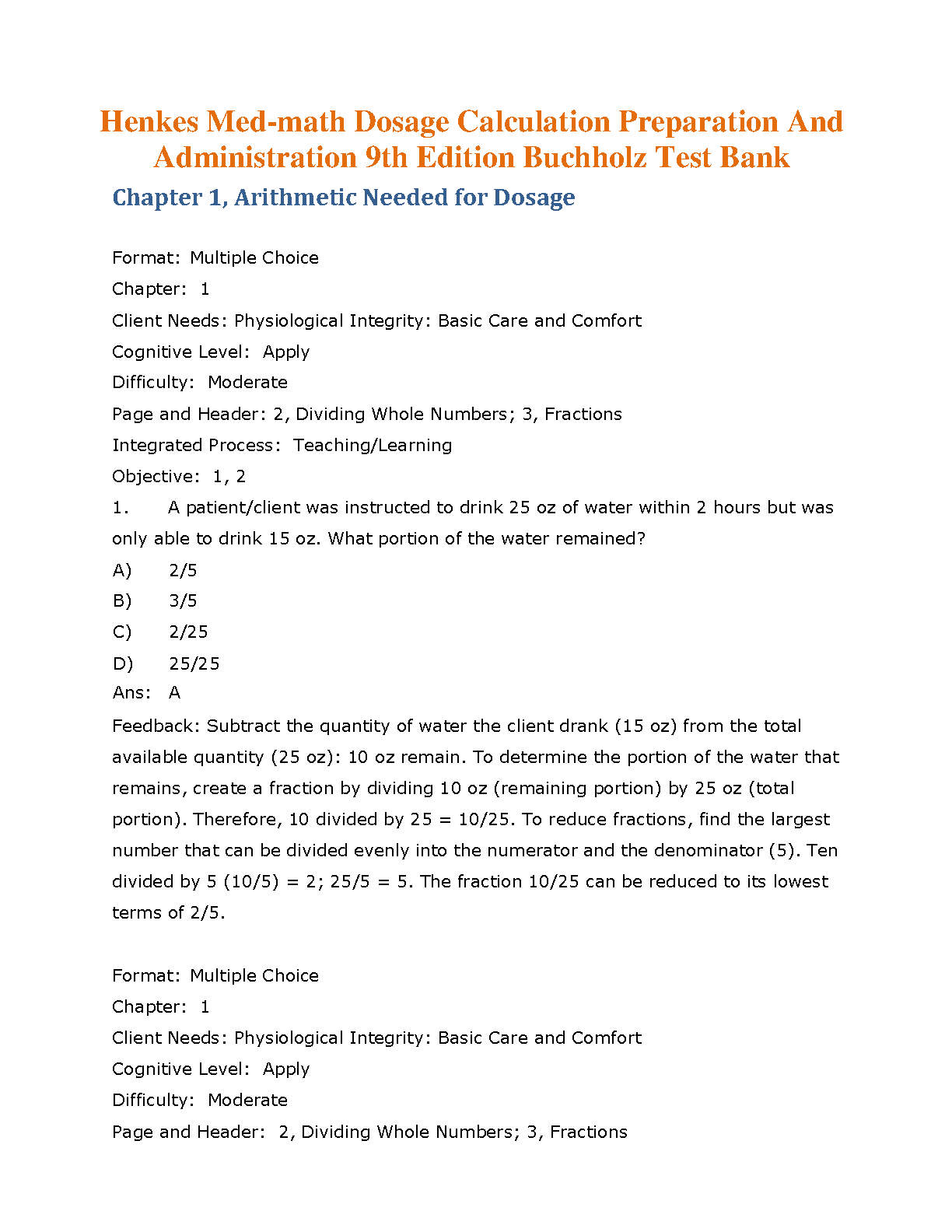 Master the complexities of medical mathematics with the official Test Bank for the 7th Edition of Henke's Med-Math. Authored by Susan Buchholz, this comprehensive resource is packed with hundreds of practice questions and detailed answers covering every aspect of dosage calculation, preparation, and safe administration. Designed to challenge your understanding and reinforce key concepts, this test bank is the ultimate study tool for nursing students looking to excel in their pharmacology courses and pass their exams with confidence.