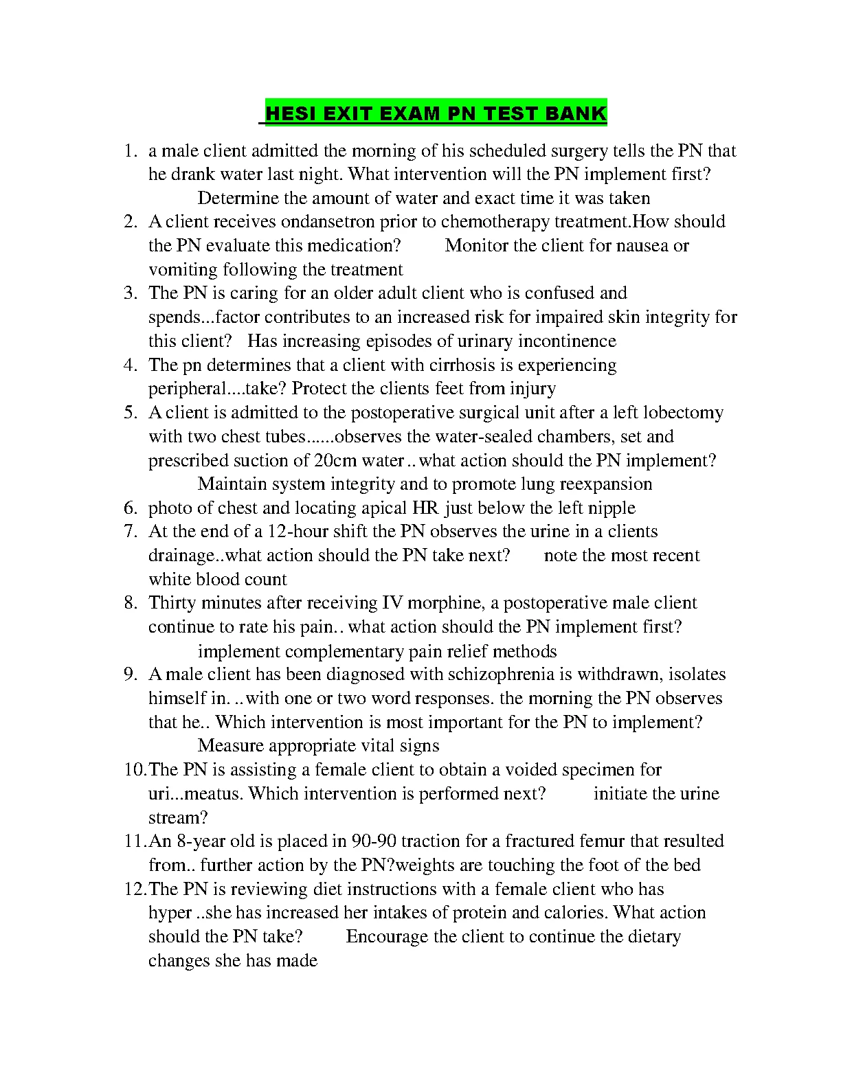 TEST BANK FOR HESI EXIT EXAM PN. LATEST UPDATED VERSION 2023. DOWNLOAD on www.hackedexams.com INSTANTLY.