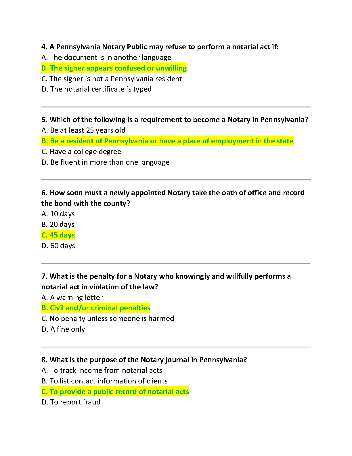 Pennsylvania Notary Public Exam 2025 Test Bank: Verified Questions & Answers