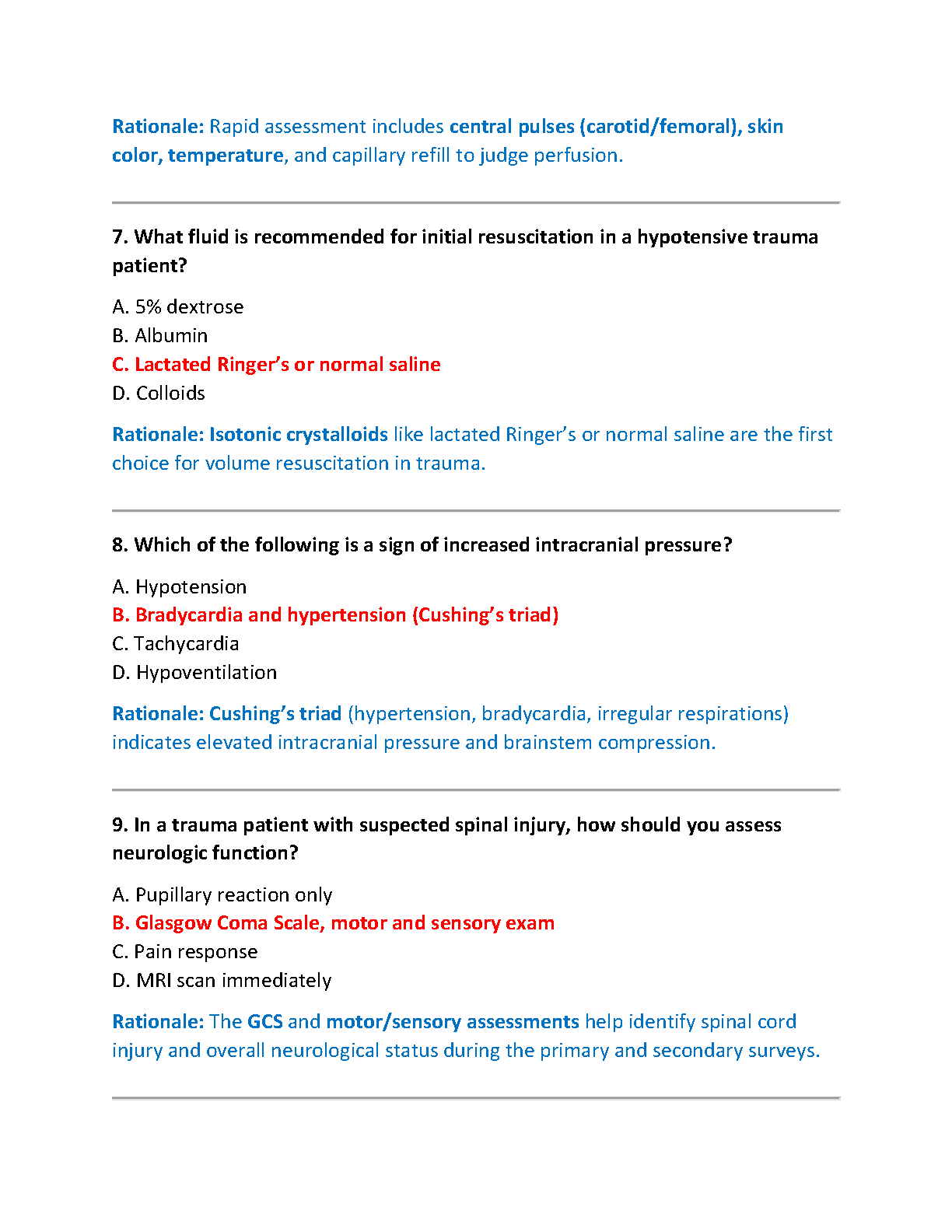 ATLS Advanced Trauma Life Support 10th Edition by American College of Surgeons | 2025 Test Bank with Questions, Answers, and Rationales