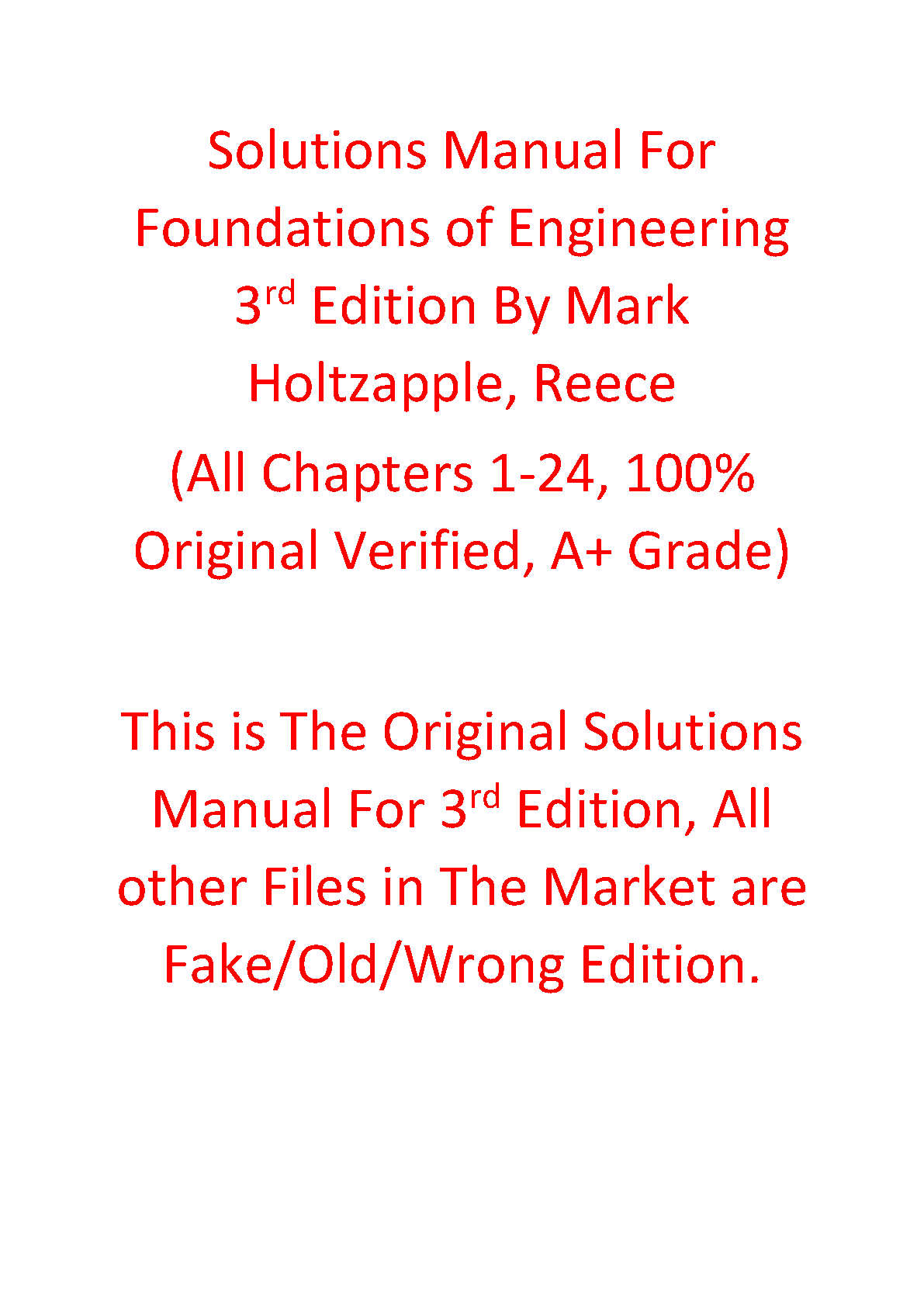 Solutions Manual for Foundations of Engineering, 3rd Edition by Mark T. Holtzapple and W. Dan Reece
