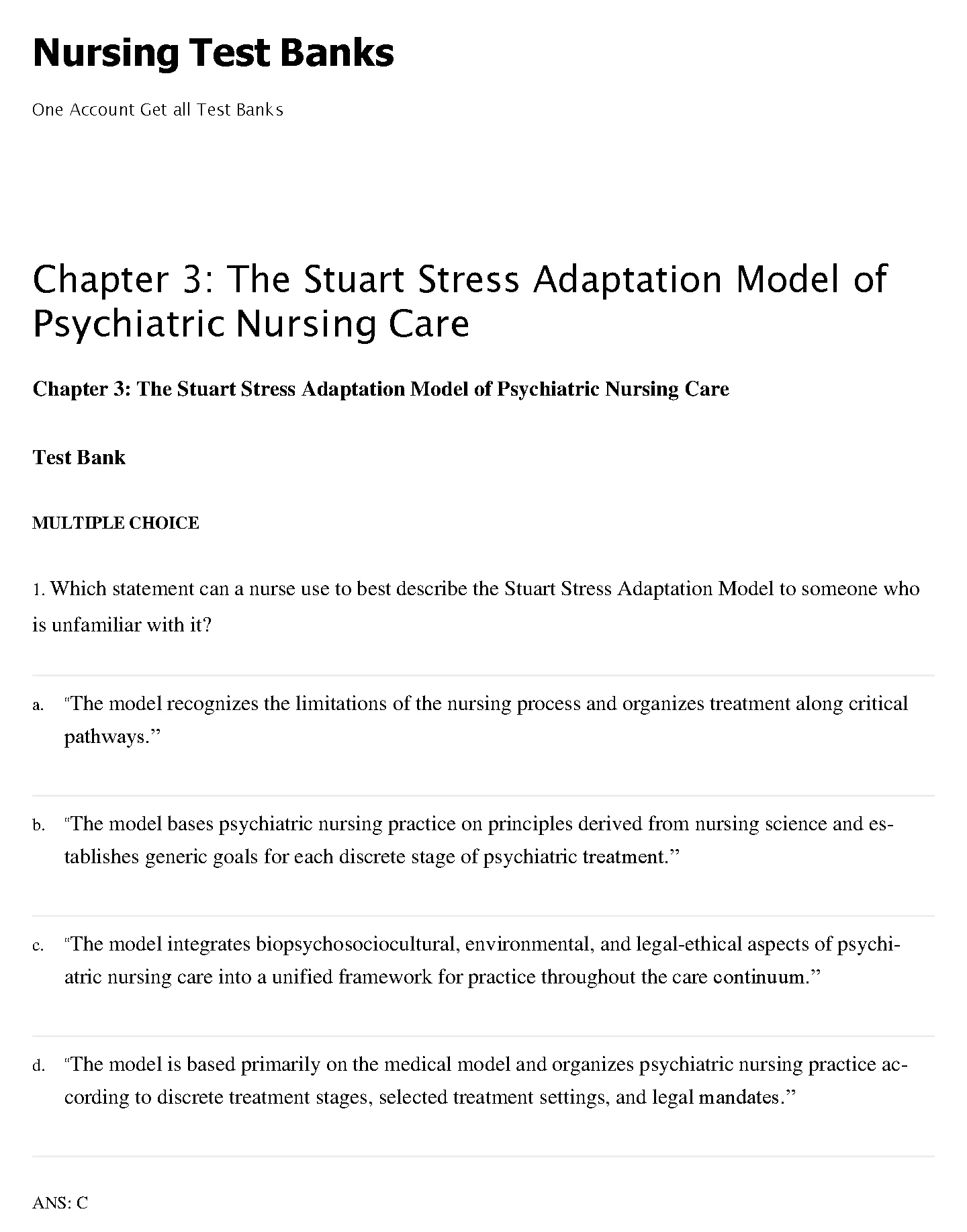 TEST BAK FOR NURSING (Chapter 3: The Stuart Stress Adaptation Model of Psychiatric Nursing Care). DOWNLOAD on www.hackedexams.com INSTANTLY.