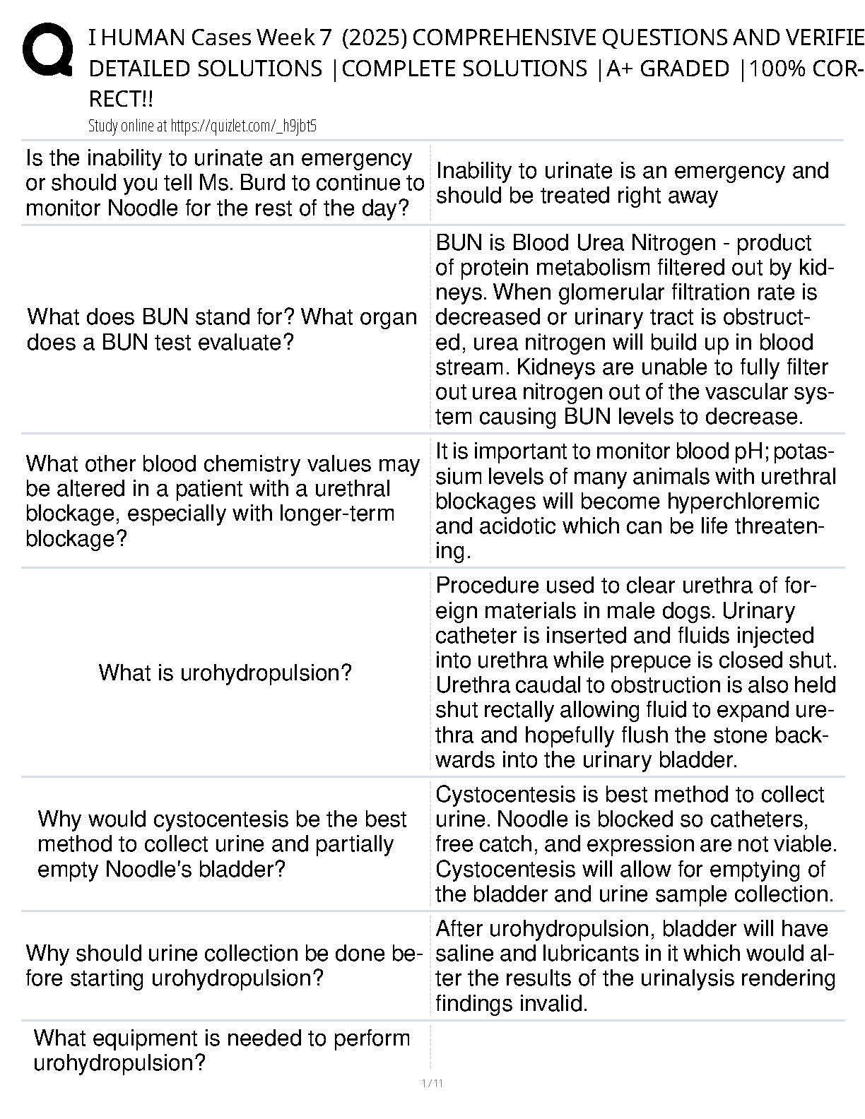 Master your iHuman Week 7 case study with our comprehensive 2025 guide. This resource provides a complete set of questions paired with expertly verified, detailed answers, ensuring you achieve an A+ grade. Delve into key veterinary concepts such as urethral blockage, BUN levels, urohydropropulsion, and cystocentesis. Our step-by-step solutions are 100% correct, designed to help you understand the case thoroughly and excel in your coursework.