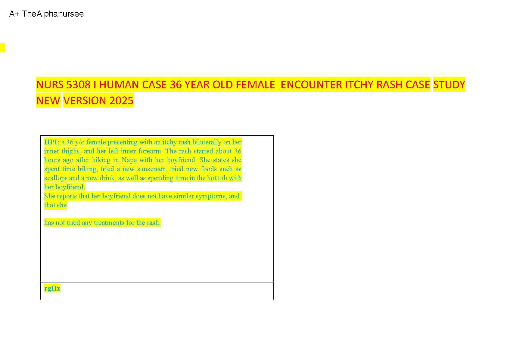 NURS 5308 i-Human Case Study: 36-Year-Old Female with Itchy Rash | Latest 2025/2026 Guide to Ace Your Exams
