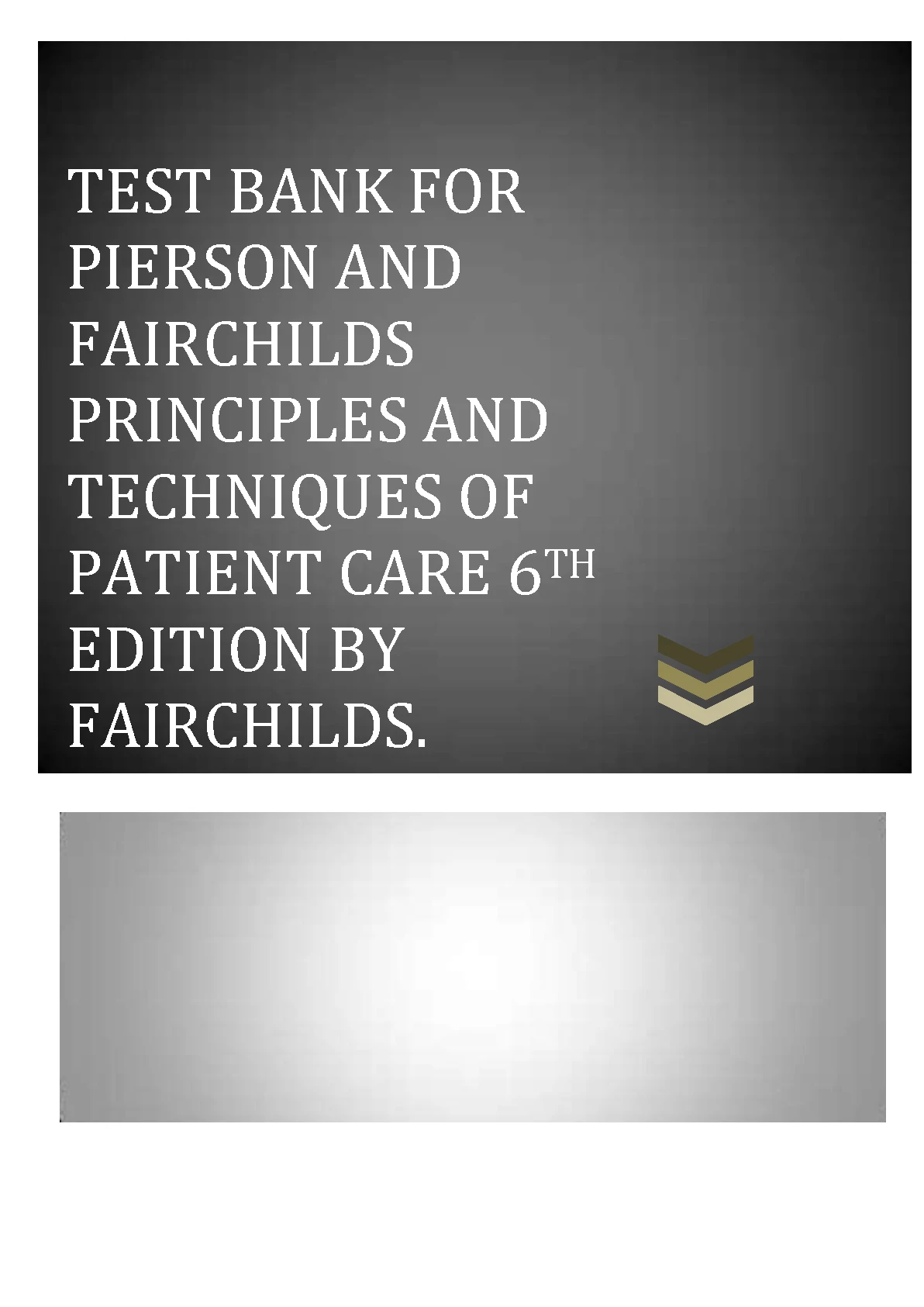 TEST BANK FOR PIERSON AND FAIRCHILDS PRINCIPLES AND TECHNIQUES OF PATIENT CARE 6TH EDITION BY FAIRCHILDS