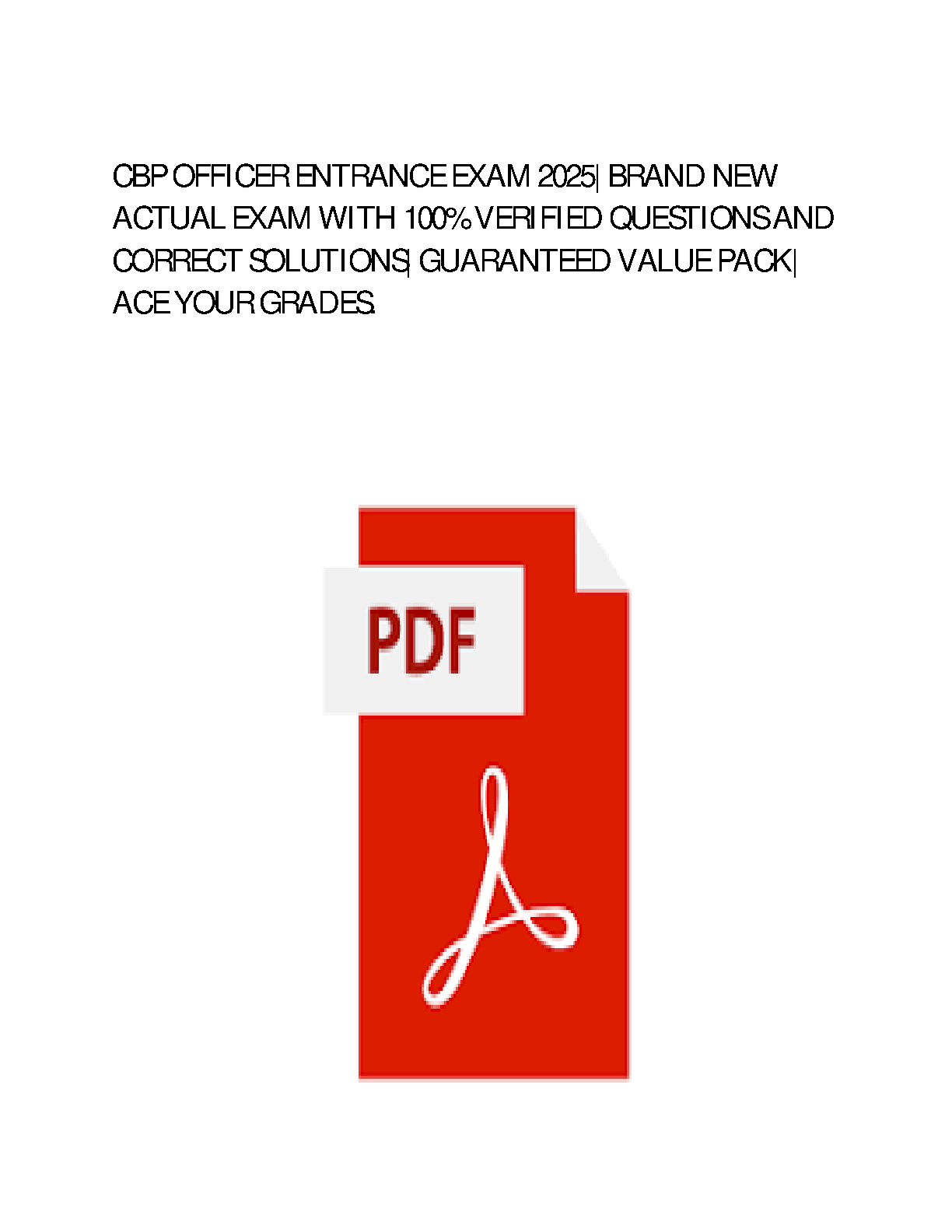 Prepare to excel in your U.S. Customs and Border Protection Officer Entrance Exam with our latest 2025/2026 test bank. This comprehensive study guide features a complete collection of actual exam questions, each with a 100% verified and correct solution. Designed to simulate the real test environment, this value pack is your ultimate tool to master the material, build confidence, and pass on your very first try. Avoid resits and start your career with CBP by acing your entrance exam!