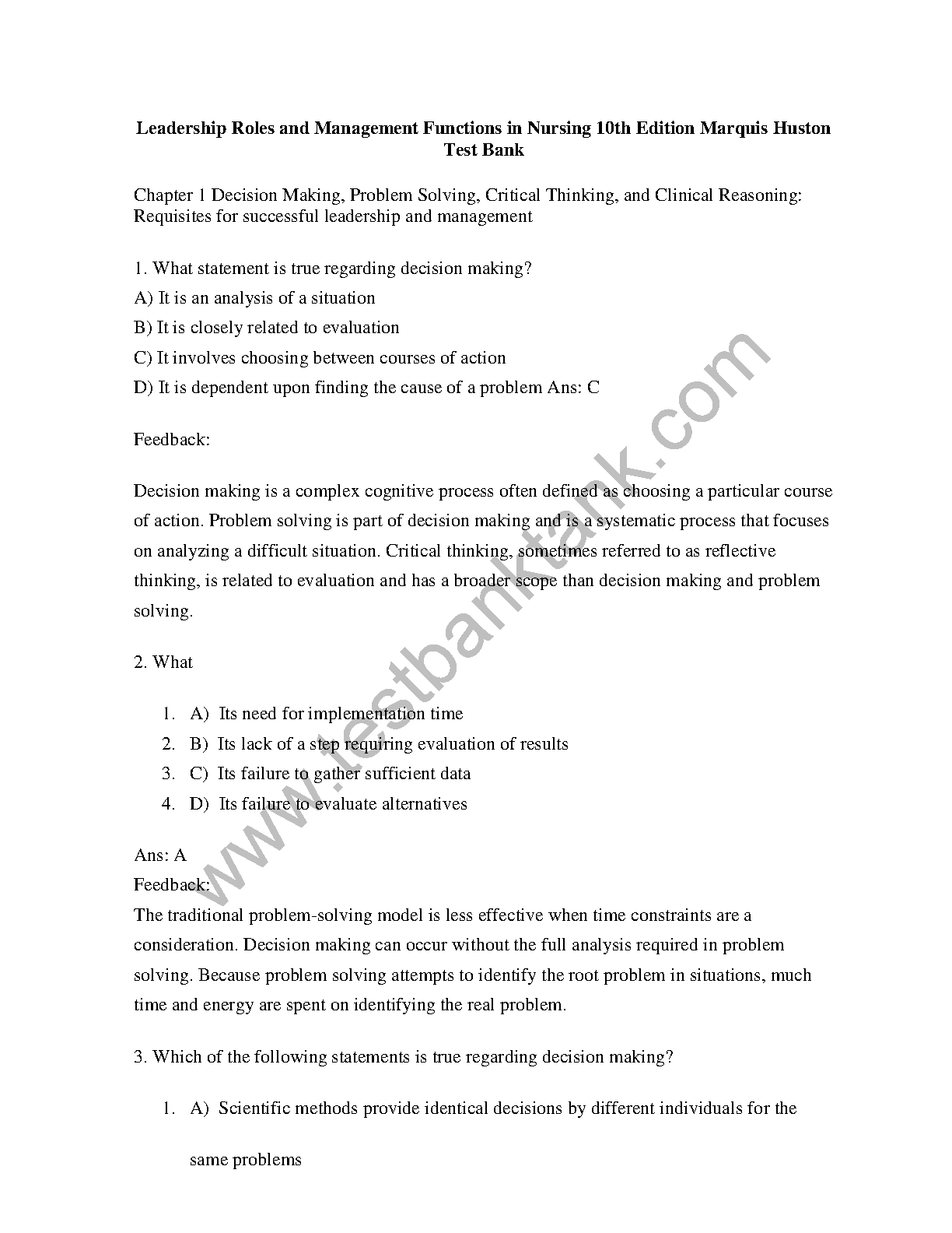 Unlock your full potential and master the complexities of nursing leadership with the official Test Bank for the 10th Edition of 'Leadership Roles and Management Functions in Nursing' by Marquis and Huston. This essential study companion is meticulously crafted to align with your textbook, offering a vast collection of exam-style questions, detailed answers, and comprehensive rationales for every chapter. Elevate your understanding, sharpen your critical thinking skills, and walk into your exams with the confidence to succeed. This is your definitive resource for acing your course and preparing for real-world nursing management challenges.