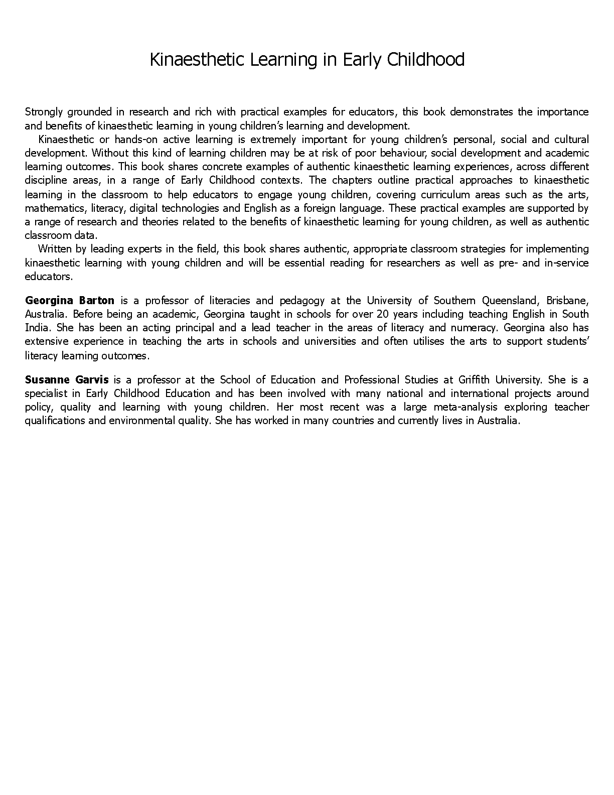 Mastering Kinaesthetic Learning in Early Childhood, 1st Edition by Georgina Barton & Susanne Garvis | 2025/2026 Guide to Ace Educator Exams