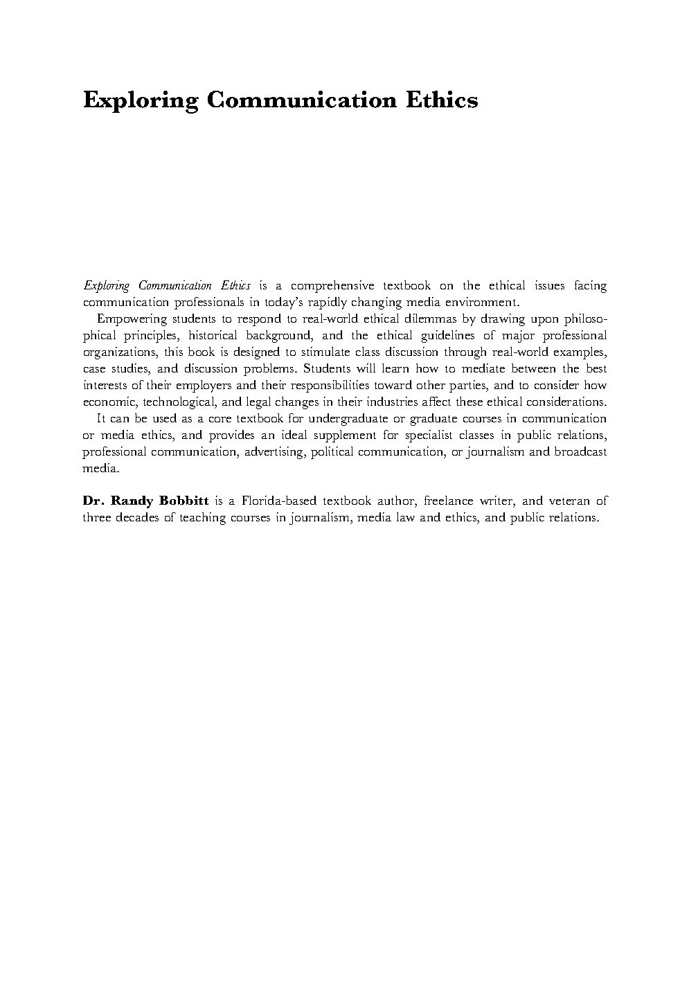 Test Bank for Exploring Communication Ethics, 1st Edition by Randy Bobbitt