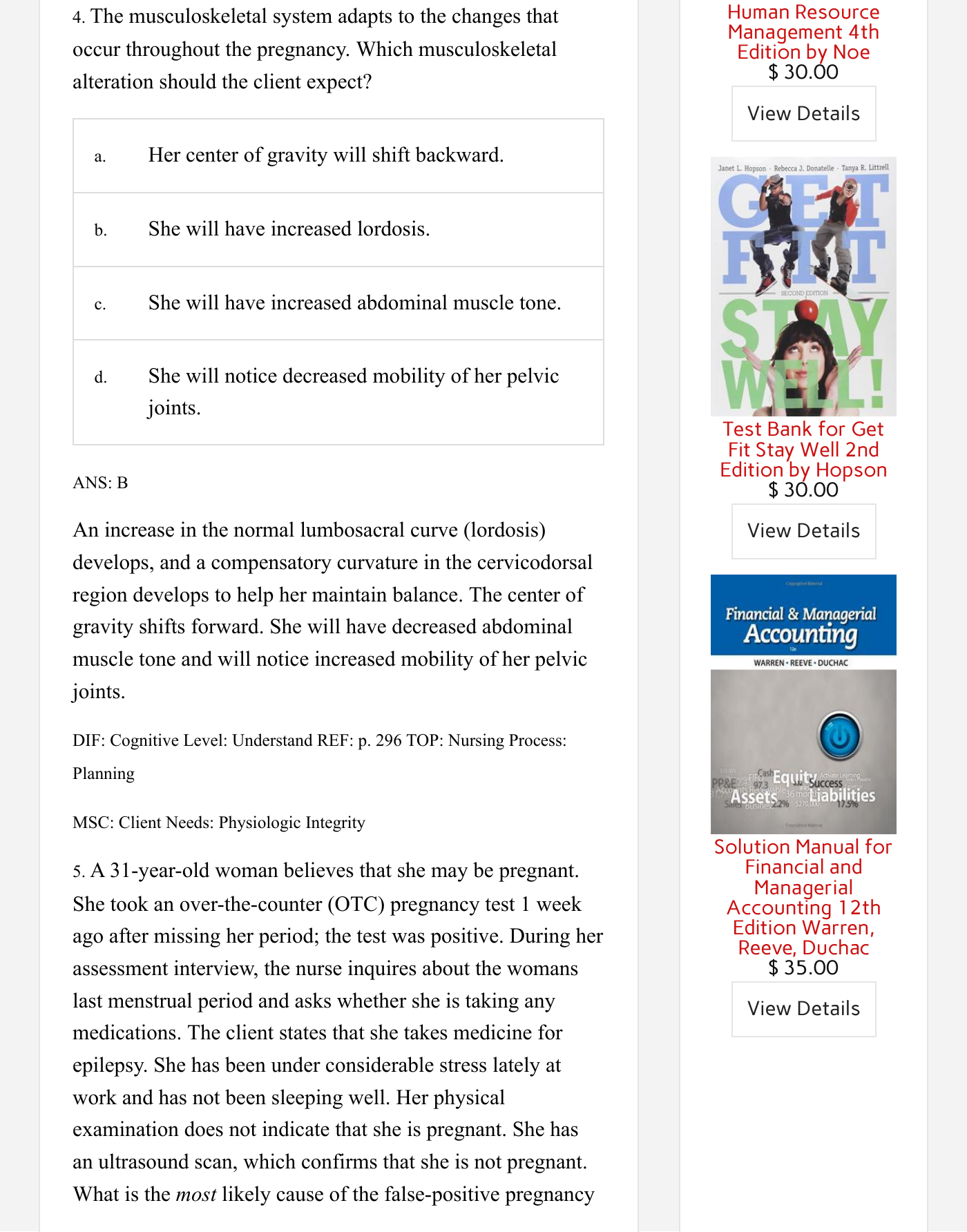 Test Bank For Maternity & Womens Health Care, 11th Edition BY Lowdermilk (Chapter 13: Anatomy and Physiology of Pregnancy). DOWNLOAD on www.hackedexams.com INSTANTLY.