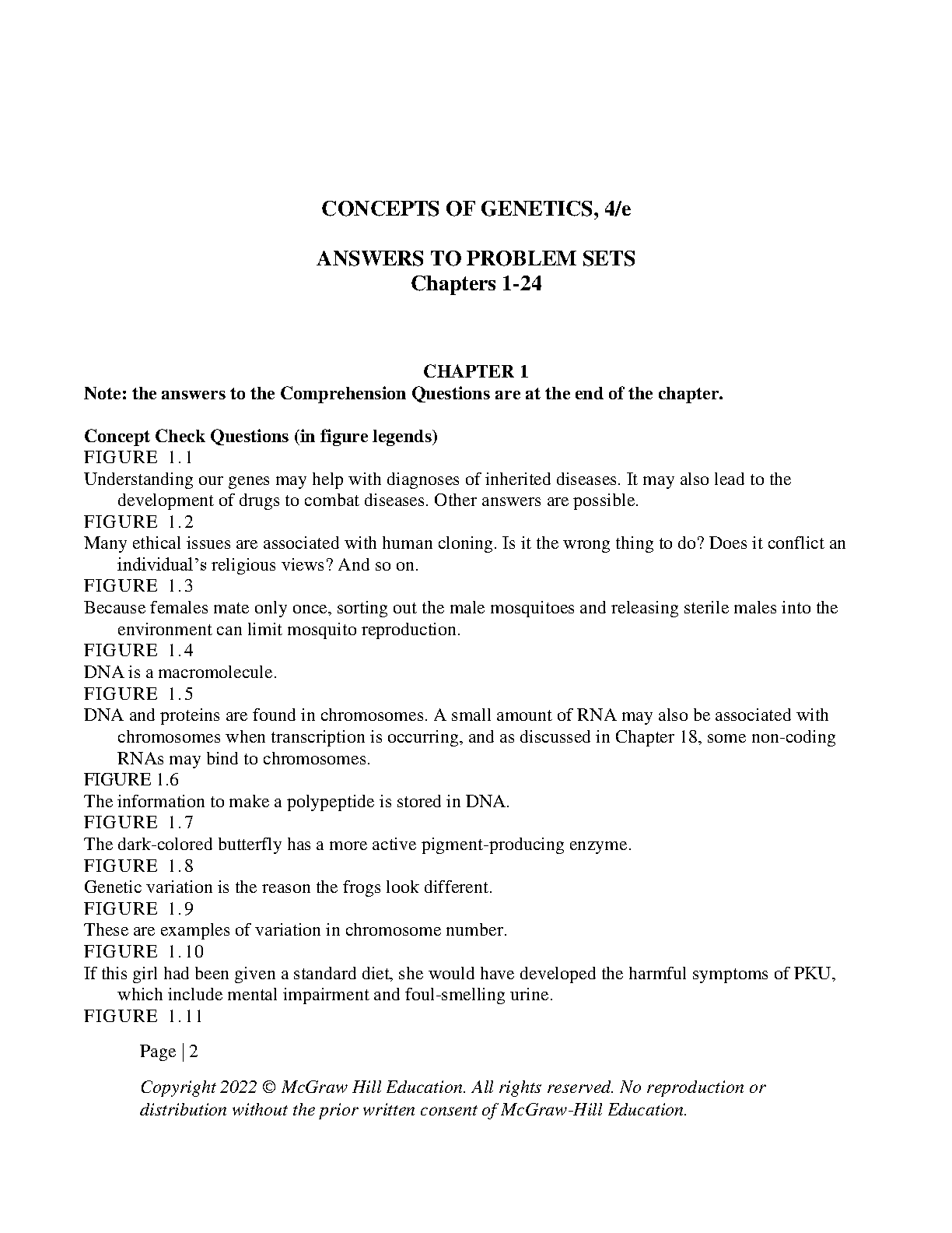 Official Solution Manual for Concepts of Genetics, 4th Edition by Robert J. Brooker - Complete Chapter Solutions