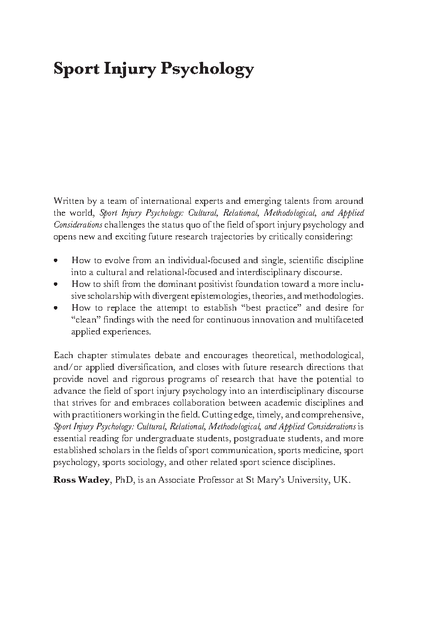 Master the complexities of Sport Injury Psychology with this essential study resource, fully updated for the 2025/2026 academic year. Edited by Ross Wadey, this guide provides a deep dive into the cultural, relational, and applied aspects of athletic injuries. It is meticulously structured to help you ace your exams and pass on your first attempt. Explore critical topics from the cultural context of sport injury to cutting-edge psychological intervention strategies. This resource breaks down complex theories and research, offering clear, applicable insights for students, future practitioners, and athletes. Secure your academic success and avoid resits with this ultimate guide to understanding the mind of an injured athlete.