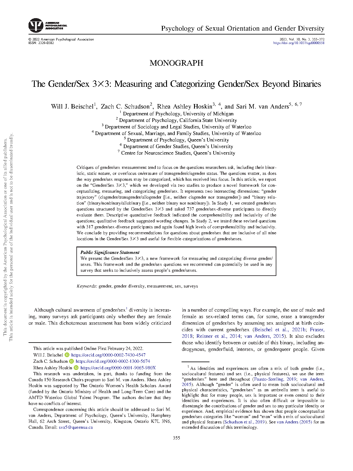 The Gender/Sex 3×3 Framework by Beischel, Schudson, Hoskin & van Anders (2023 Edition): Latest 2025/2026 Study Resource to Pass Psychology & Sociology Exams First Time